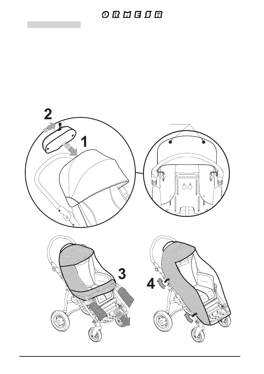 4- ATTACH THE RAIN COVER TO THE FRAME USING THE STRAPS WITH BUTTONS