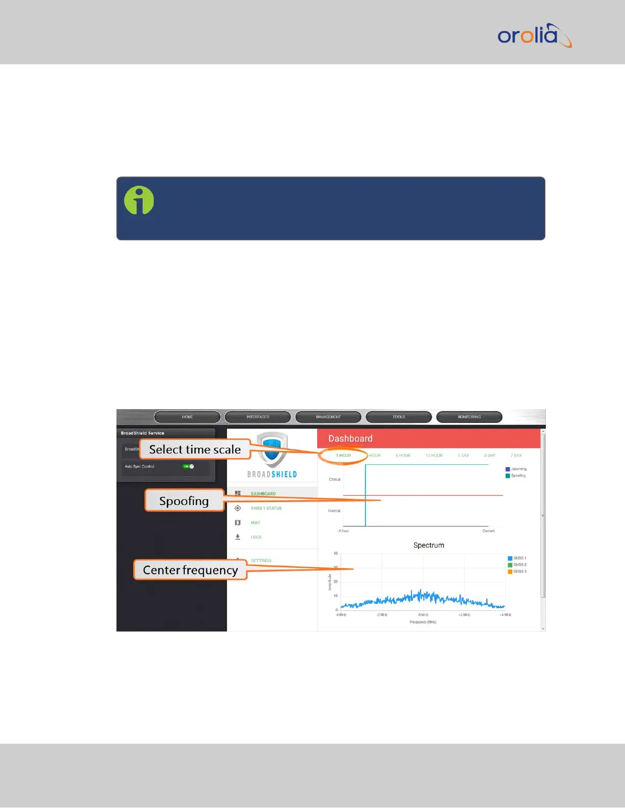 The Dashboard top graph displays the past signal level over time, divided into a Normal