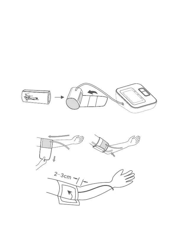 e) Lay your arm on a table (palm upward) so the cuff is at the same