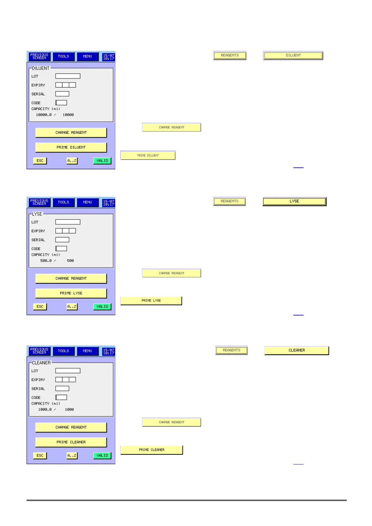 - After the replacement of a new container or to prime the lyse, press
