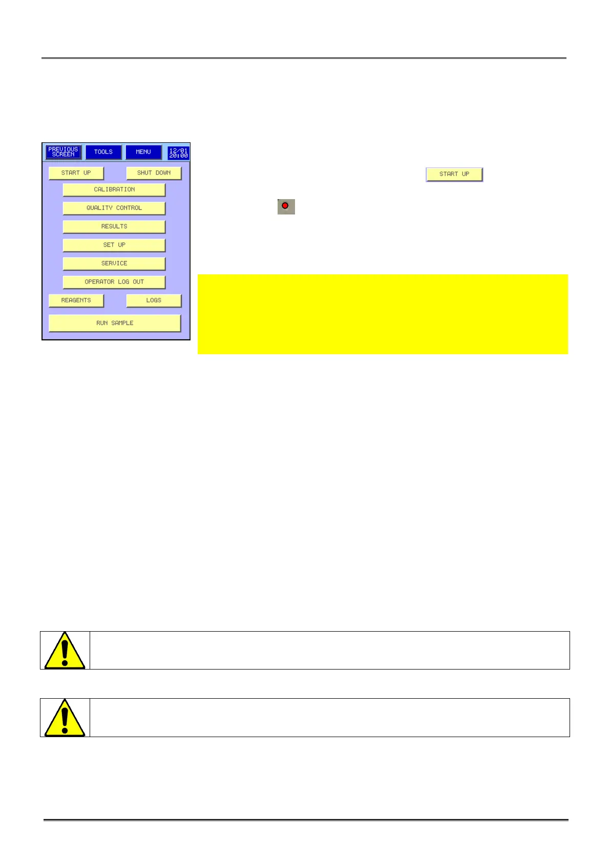 - To prepare the system before analysis, press .