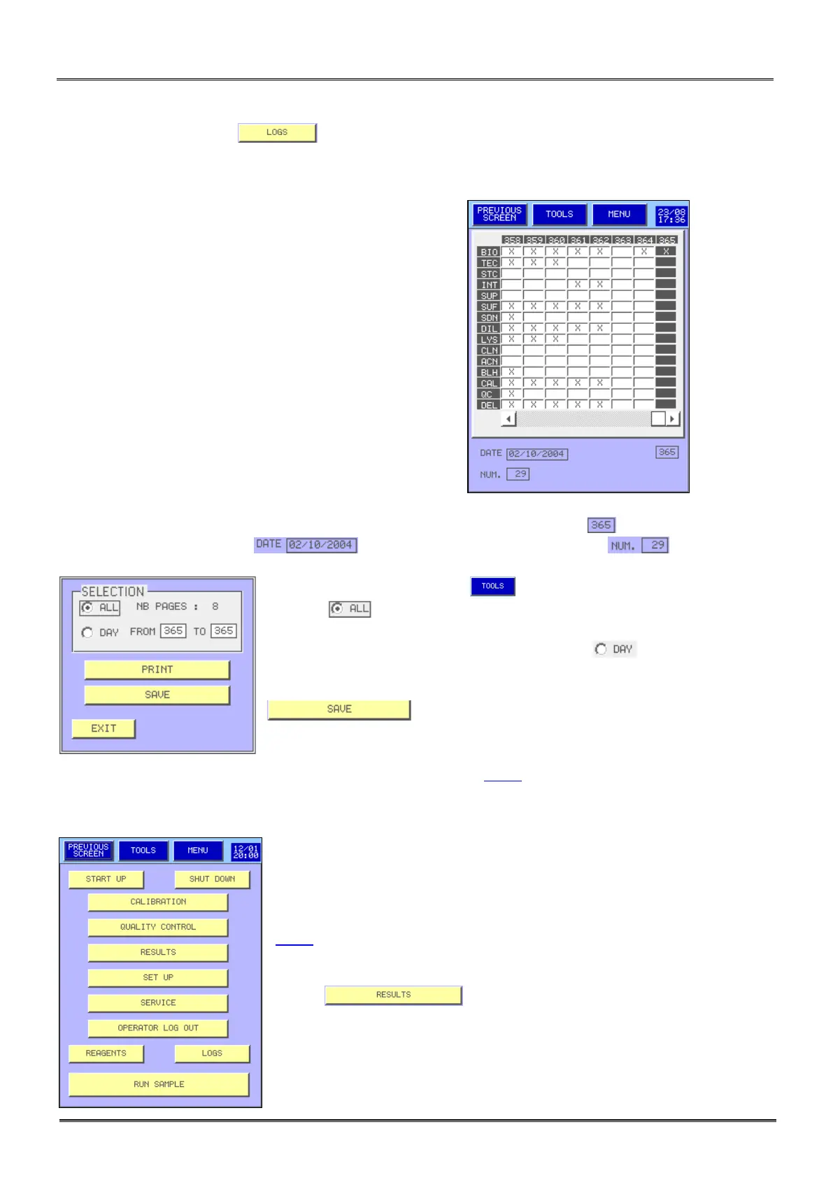 From the main menu, press to reach the logs display.