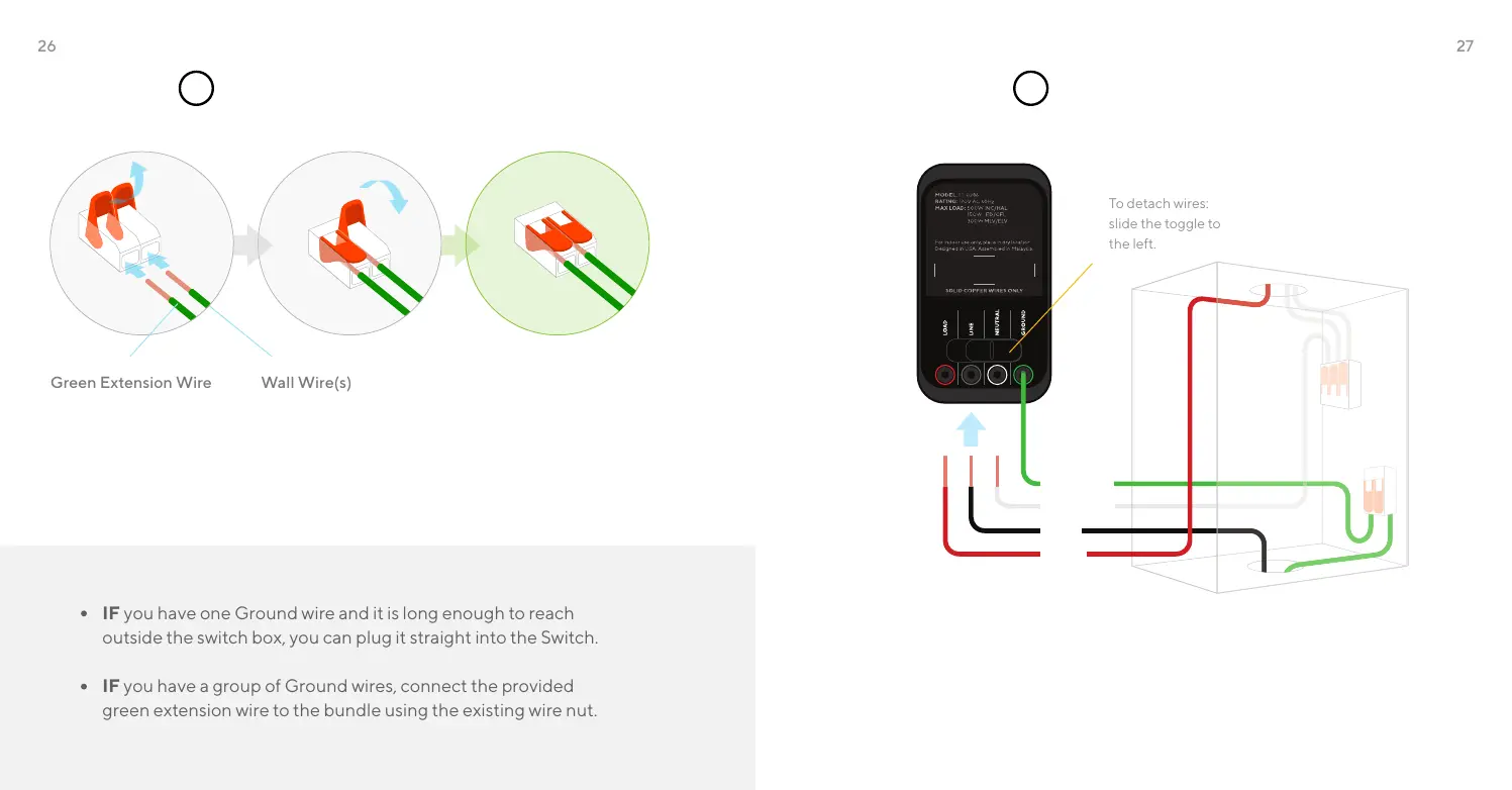 To detach wires, hold slider to the left.