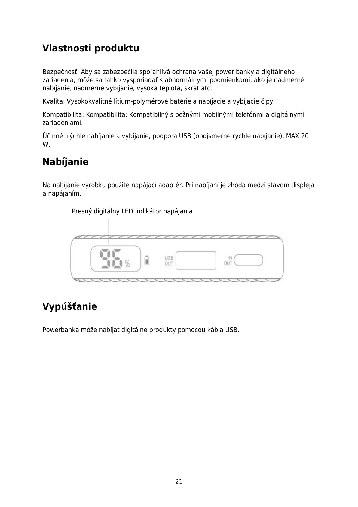 Účinné: rýchle nabíjanie a vybíjanie, podpora USB (obojsmerné rýchle nabíjanie), MAX 20