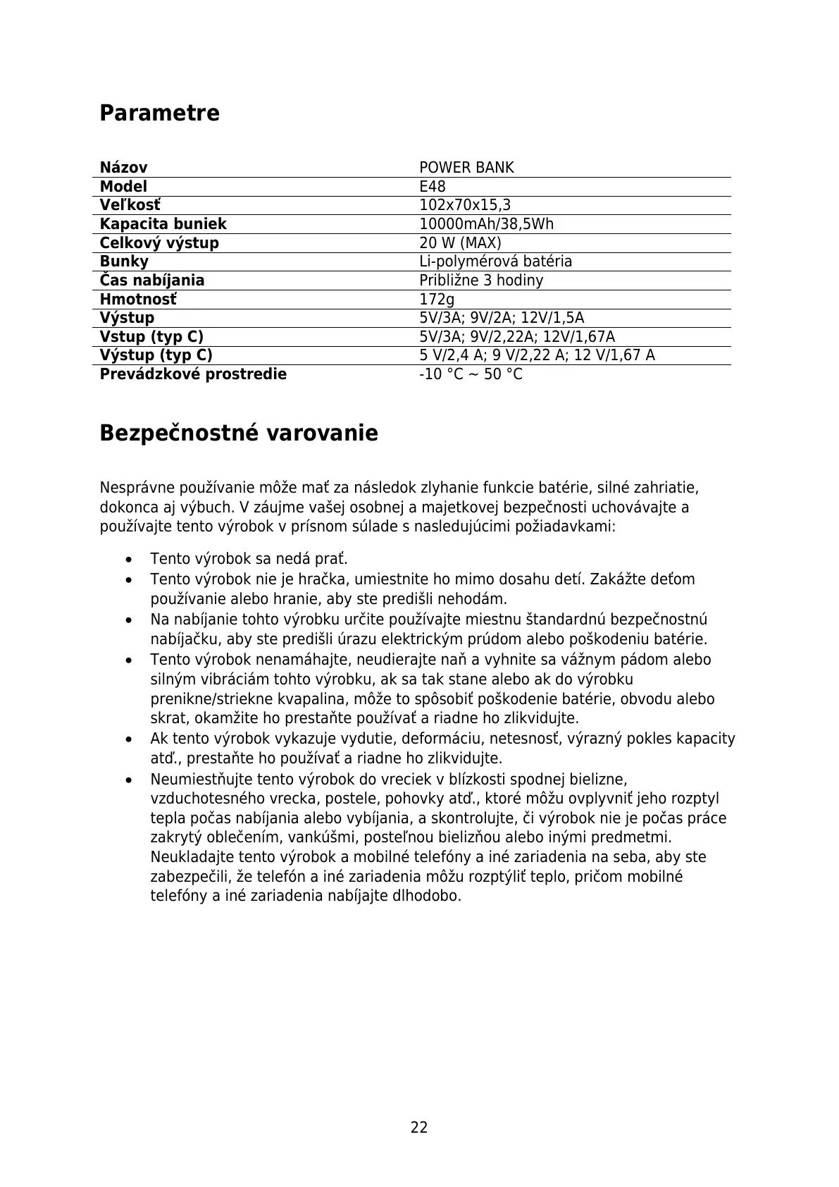 Na nabíjanie tohto výrobku určite používajte miestnu štandardnú bezpečnostnú