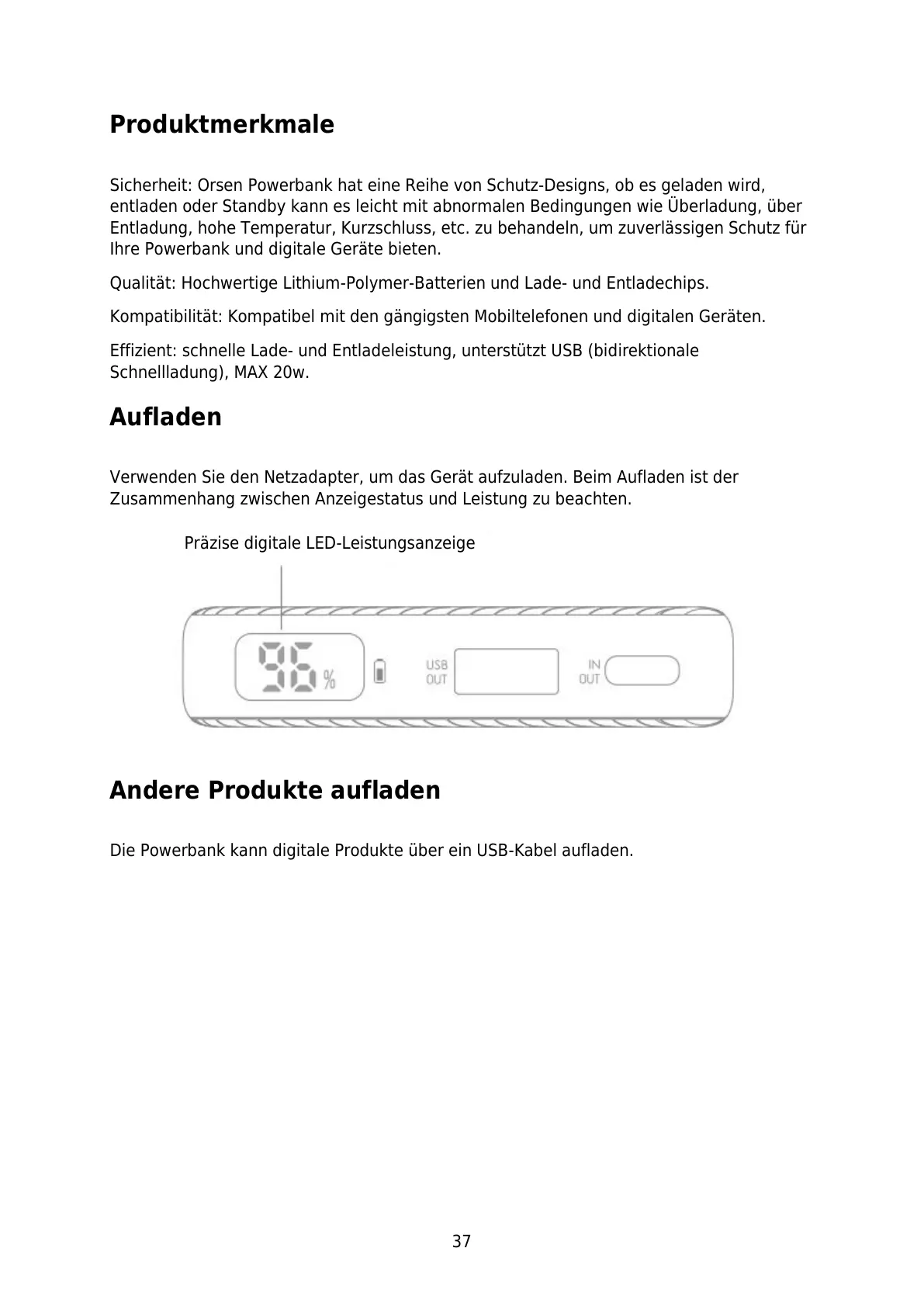 Sicherheit: Orsen Powerbank hat eine Reihe von Schutz-Designs, ob es geladen wird,