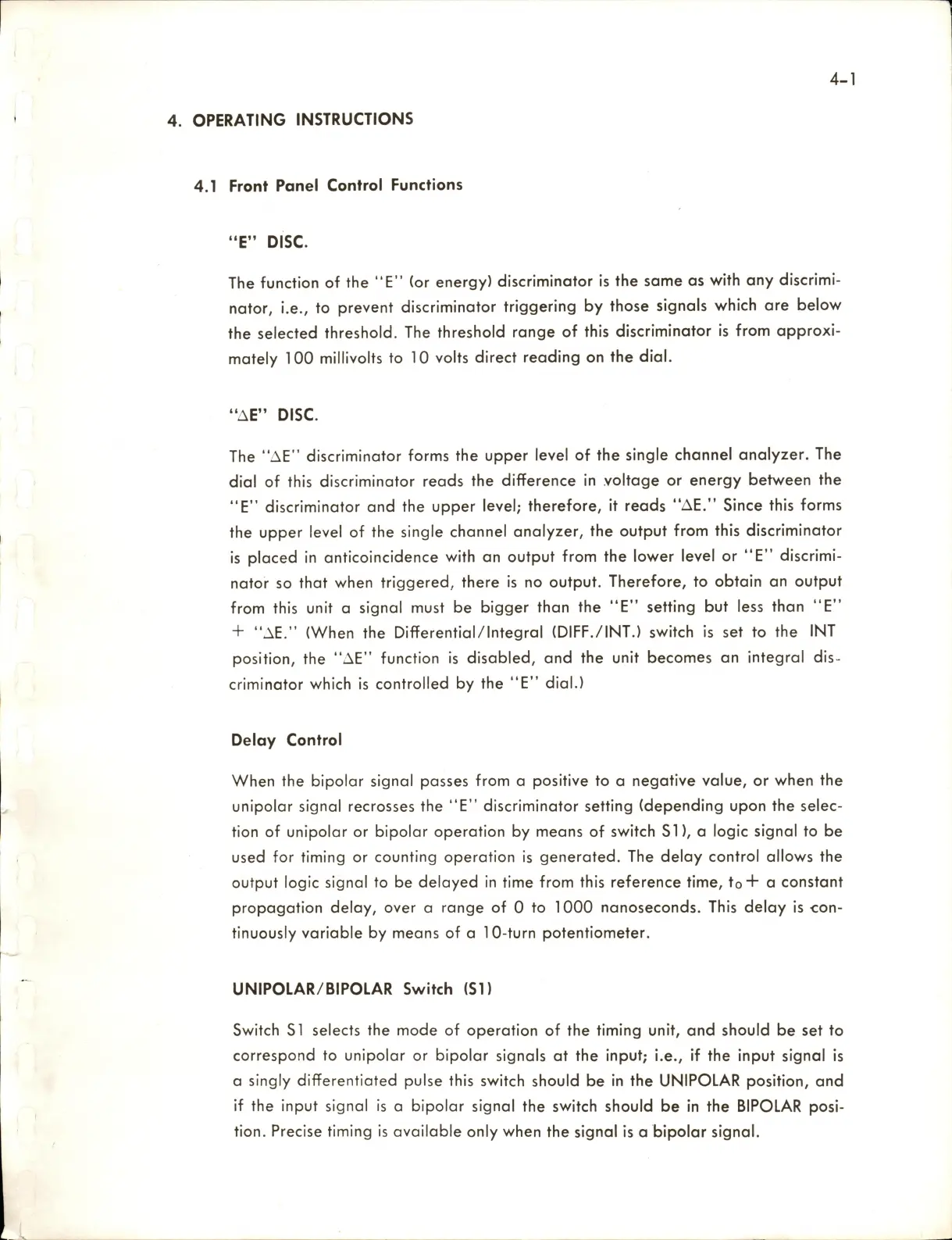 ORTEC 420 - Operating Procedures; Front Panel Control Functions