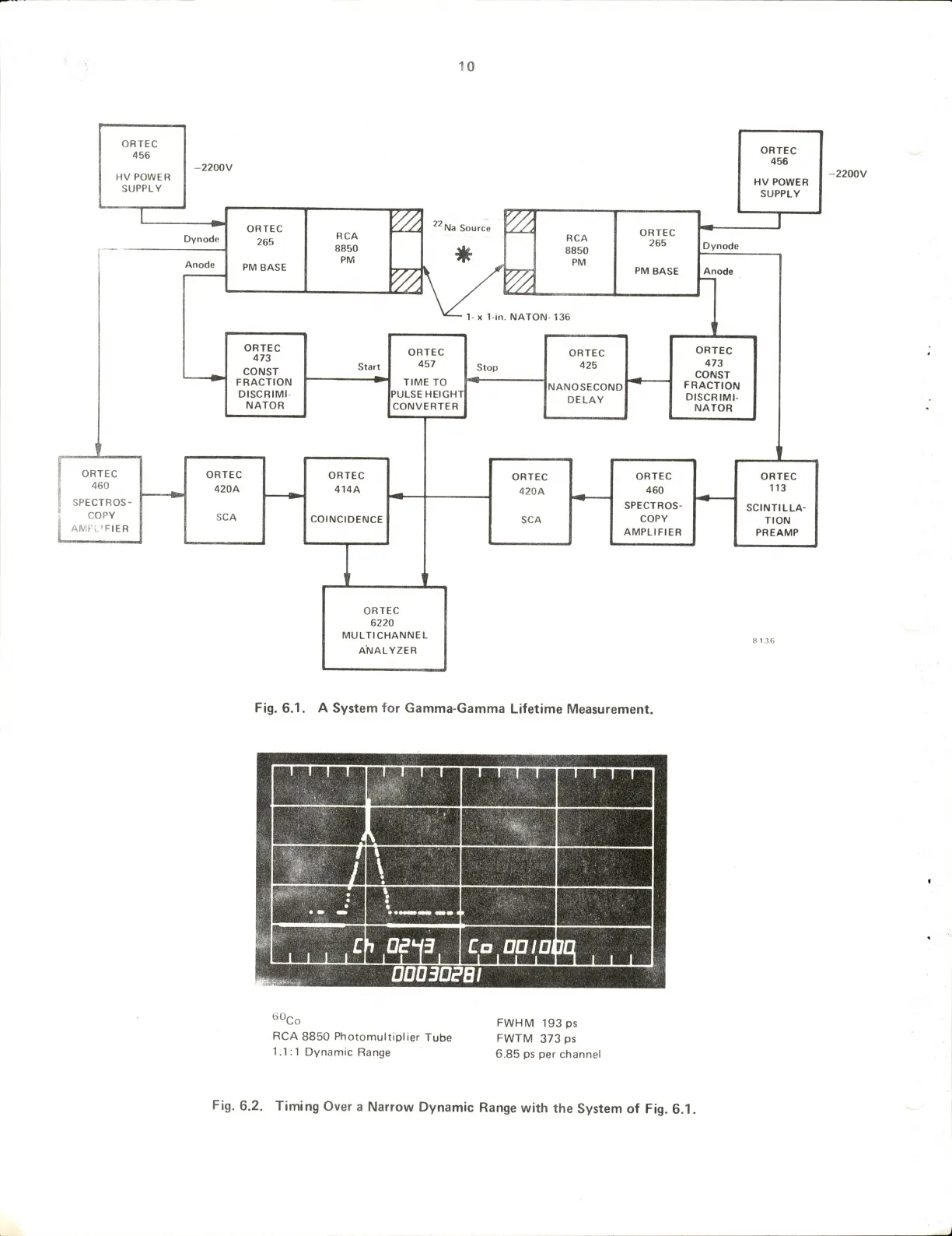 ORTEC 473 - Fig. 6.1. a System for Gamma-Gamma Lifetime Measurement; Fig. 6.2. Timing over a Narrow Dynamic Range with the System of Fig. 6.1