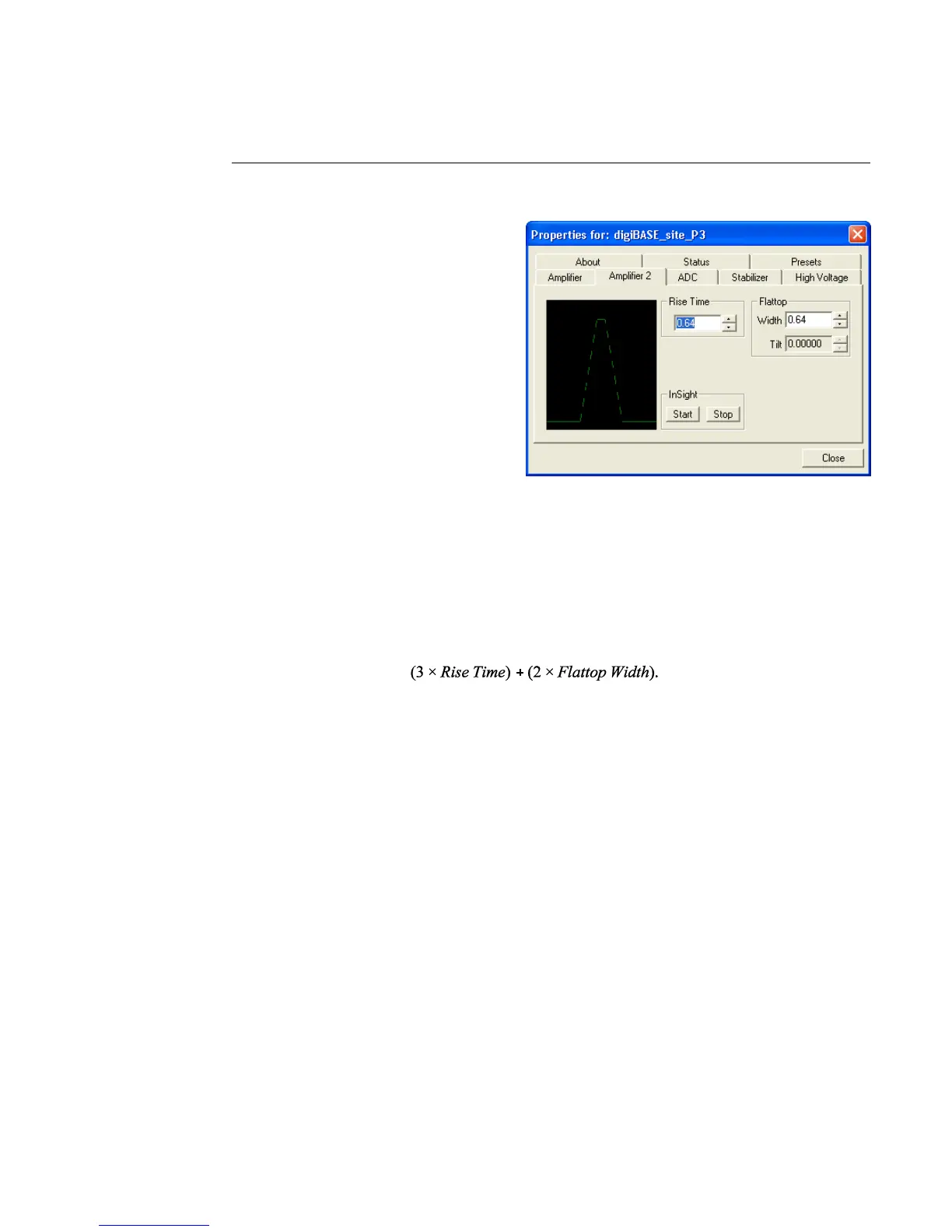 The Flattop Width adjusts the width of the top of the quasi-trapezoid from 40 ns to 2.0 μs in