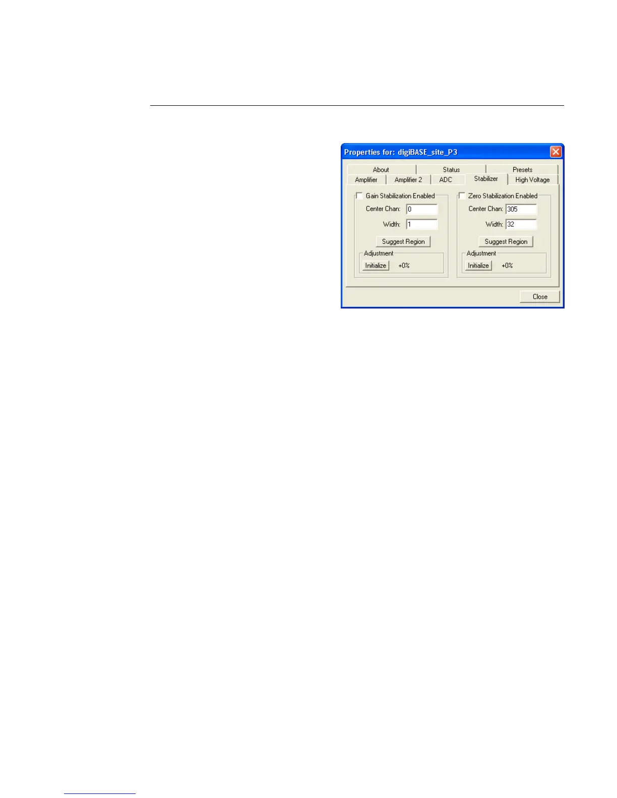 To enable the stabilizer, enter the Center Channel and Width values manually or click on the