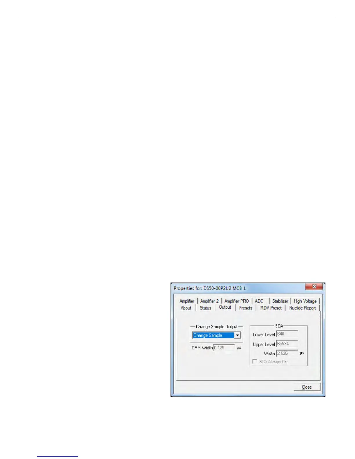 When you close the Properties dialog, all the values entered are written to the DSPEC 50 and