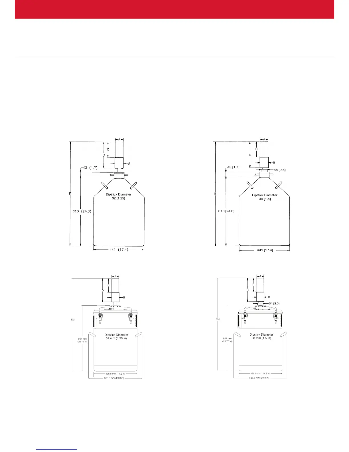 Note: Cryostat/Dewar drawings are NOT to scale, see tables that follow for complete dimensions.