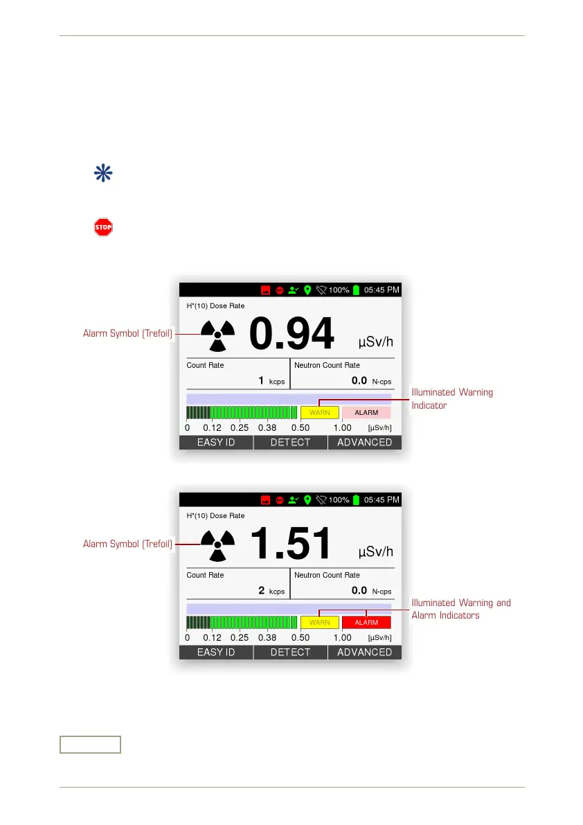 Figure 23: Dose rate display with gamma alarm