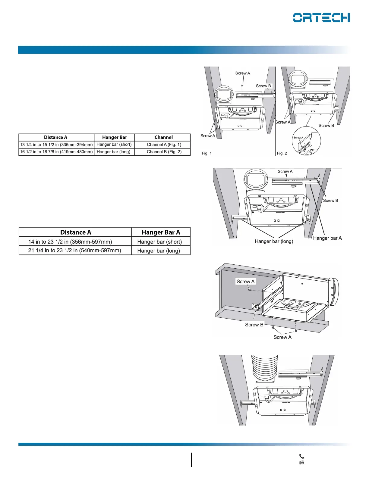 Slide one hanger bar (long) into channel B on the housing and adjust as