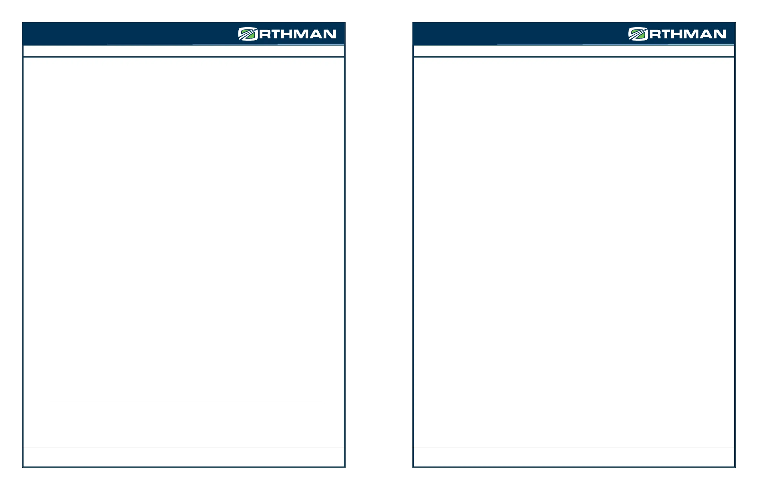 rates or parts replaced during actual warranty repair. Orthman reserves the right to adjust warranty labor credits to believed normal repair times as