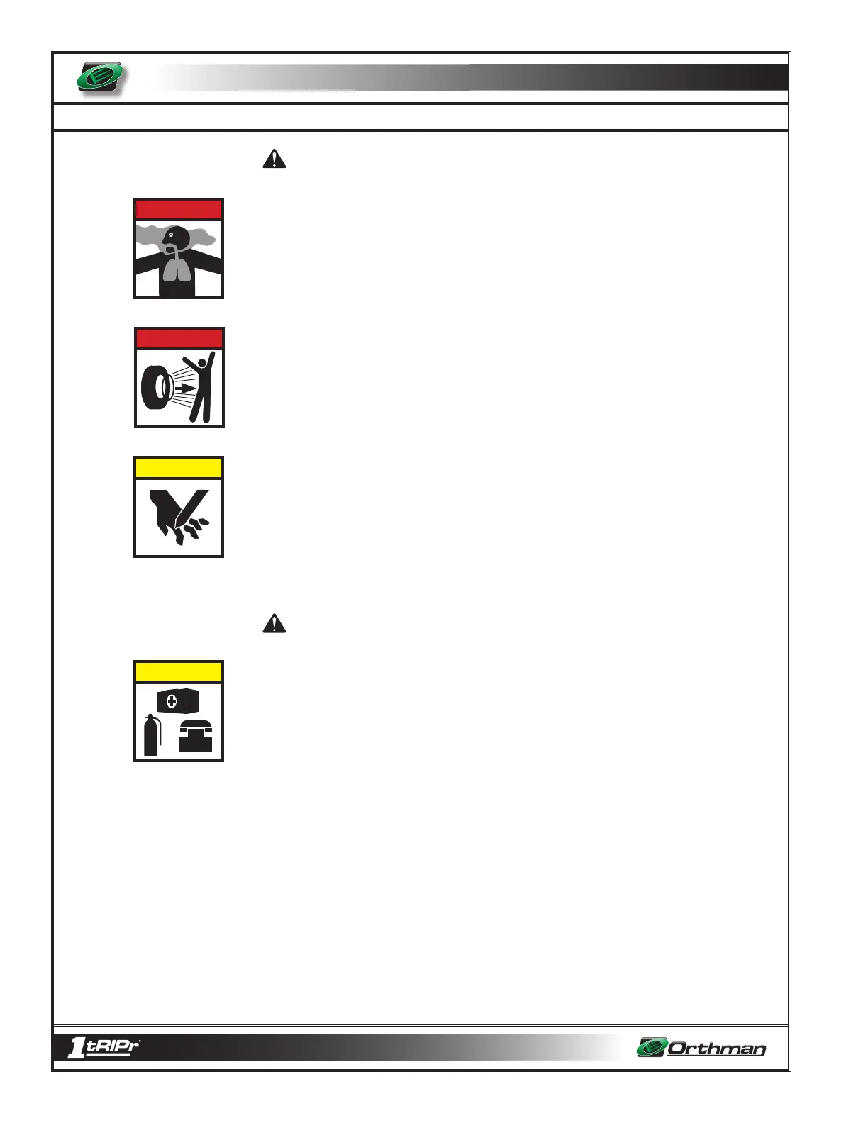 • Service tires safely. Tire and rim separation can result in serious injury or death. Do not