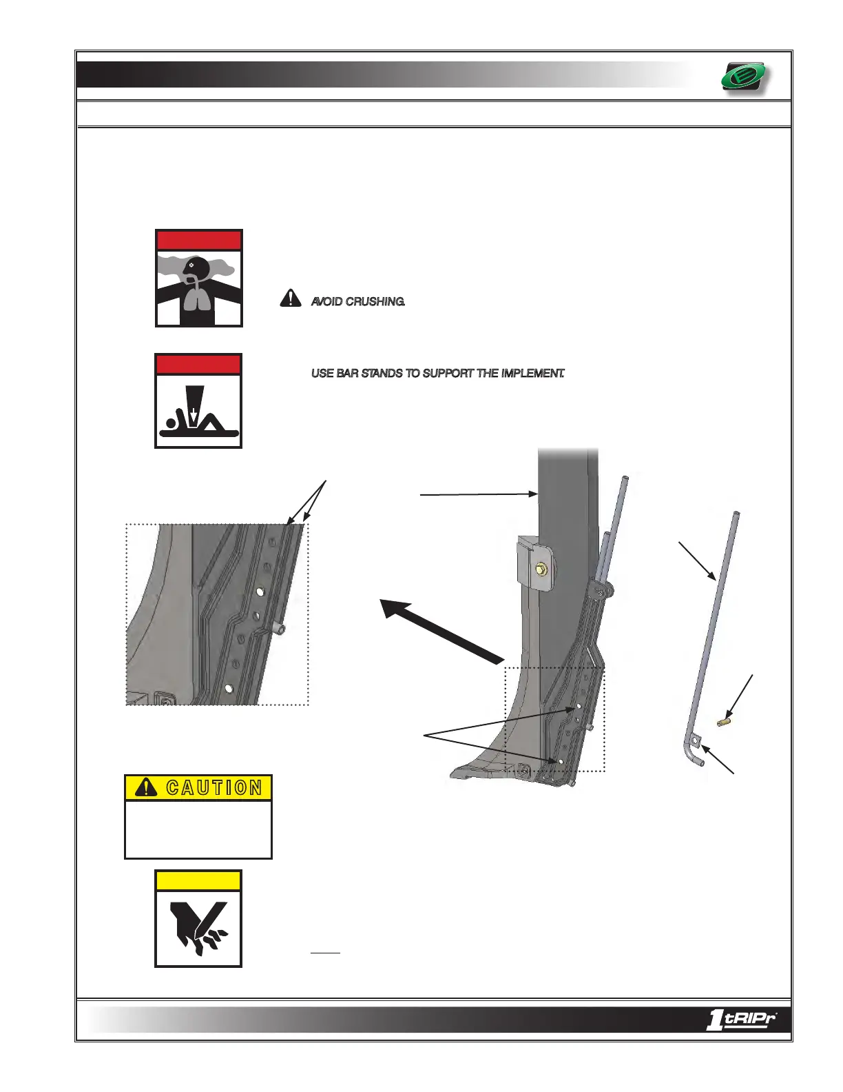 AVOID CRUSHING. Make sure all personnel are clear of the implement. Lower implement