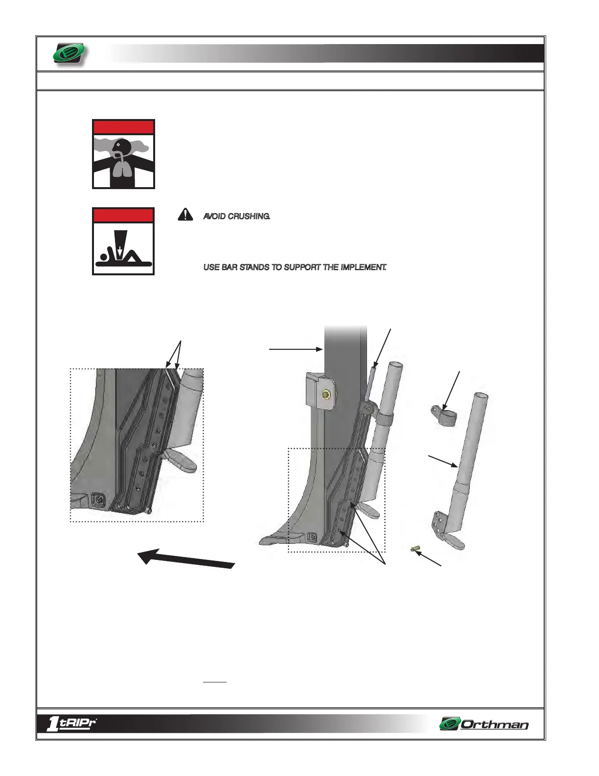 AVOID CRUSHING. Make sure all personnel are clear of the implement. Lower implement