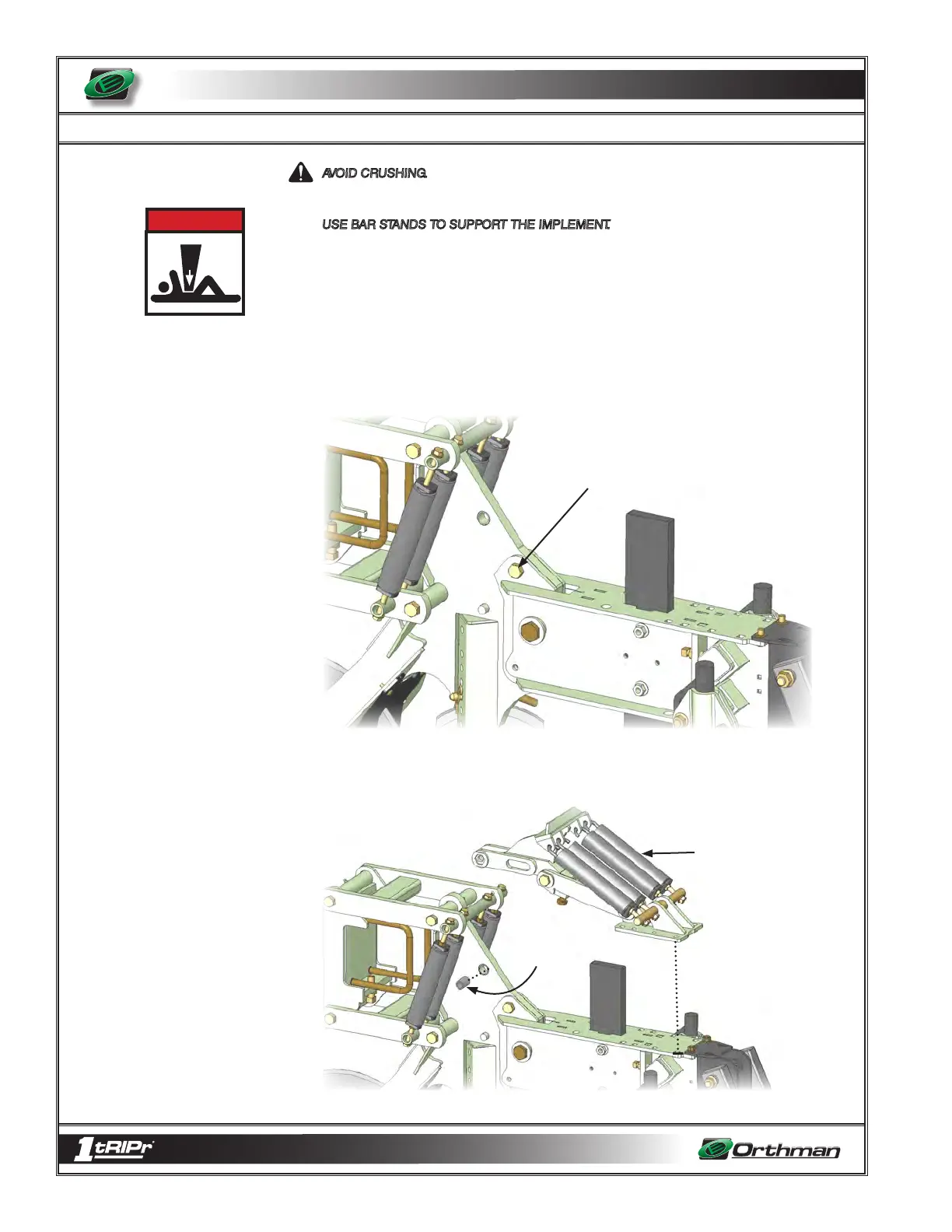 AVOID CRUSHING. Make sure all personnel are clear of the implement. Lower implement