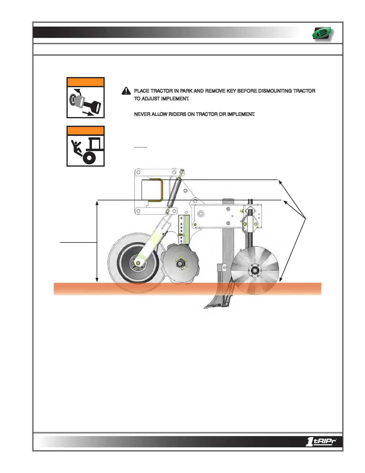 NEVER ALLOW RIDERS ON TRACTOR OR IMPLEMENT. Riders hinder operator visibility