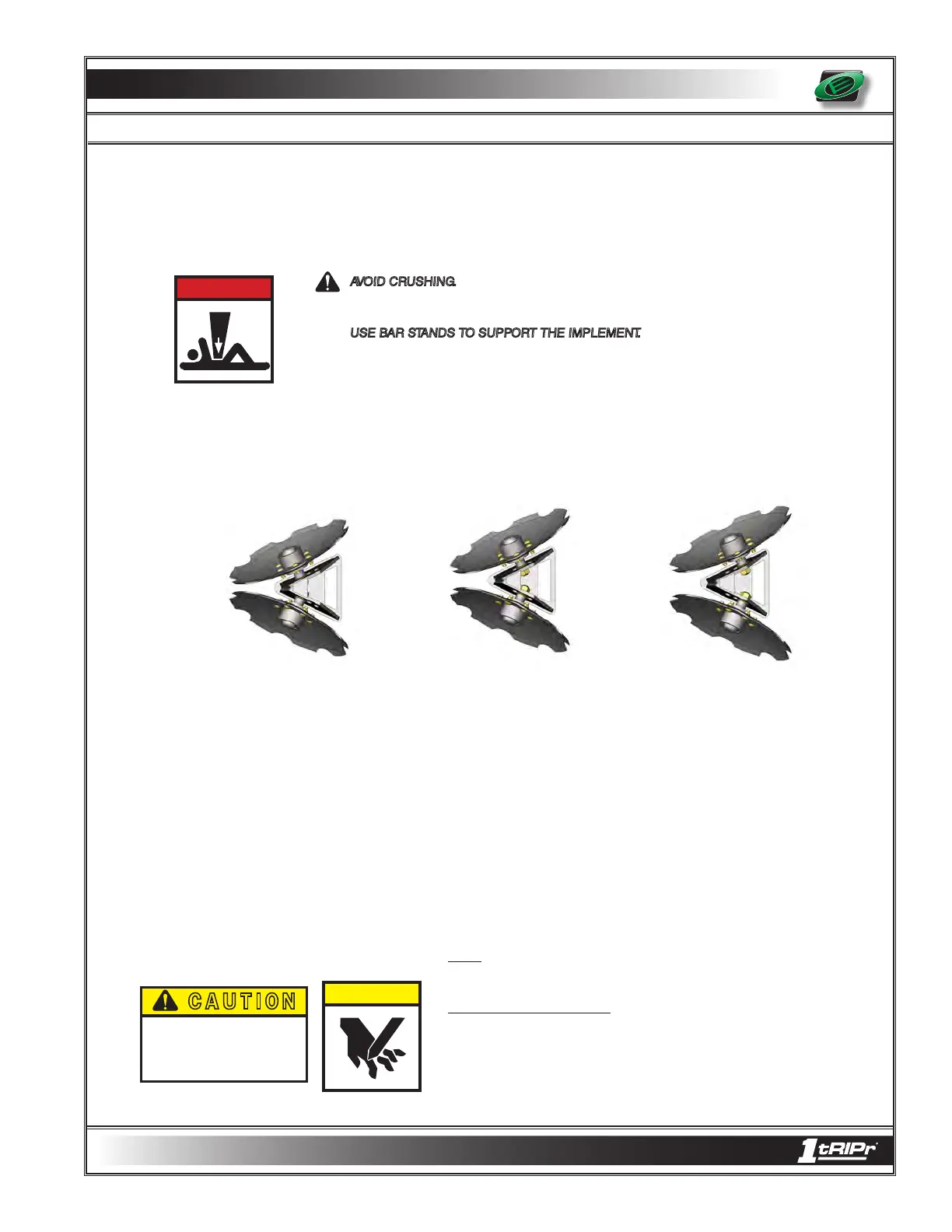 AVOID CRUSHING. Make sure all personnel are clear of the implement. Lower implement
