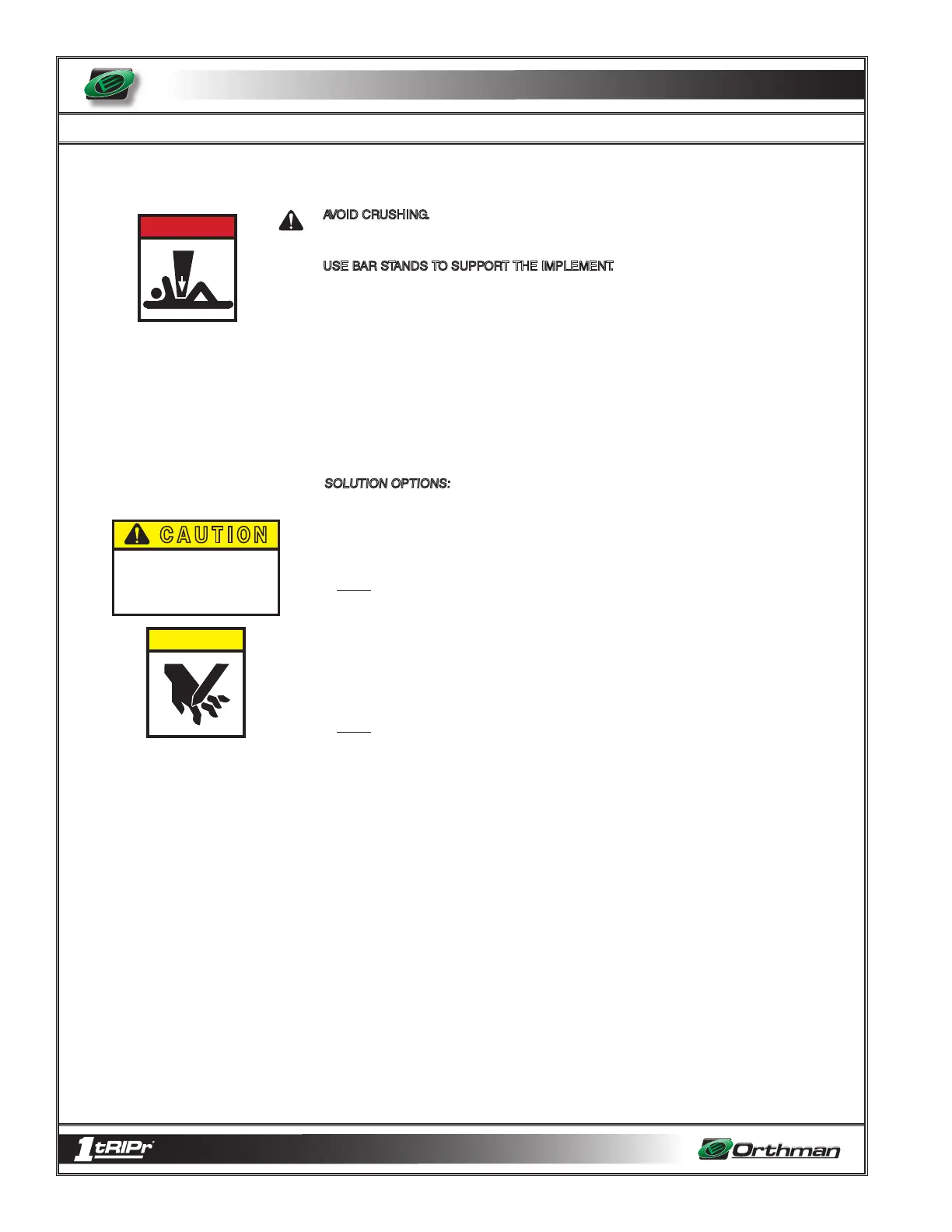 injury or death, as well as implement damage. Securely support all implement components