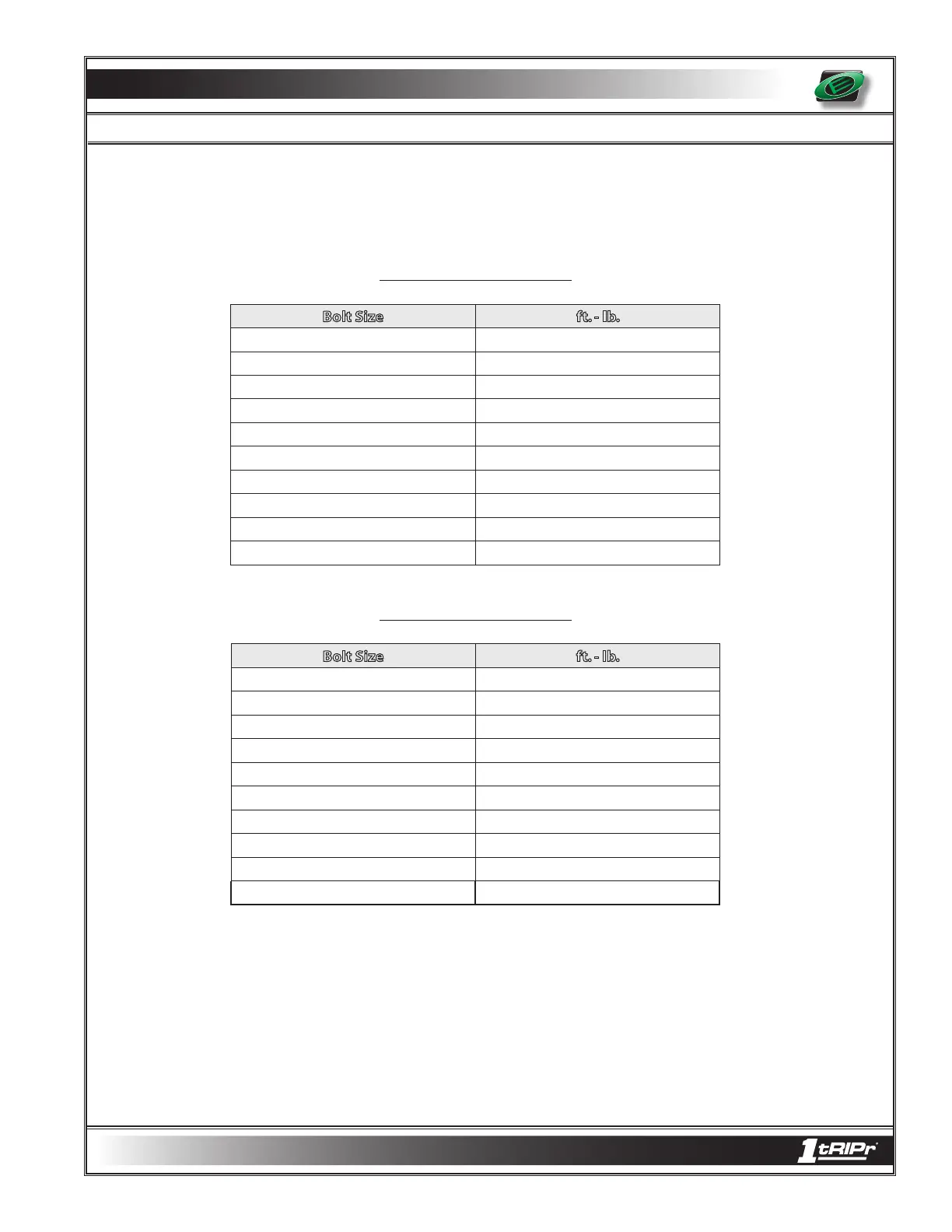 Orthman 1tRIPr - Torque Specifications