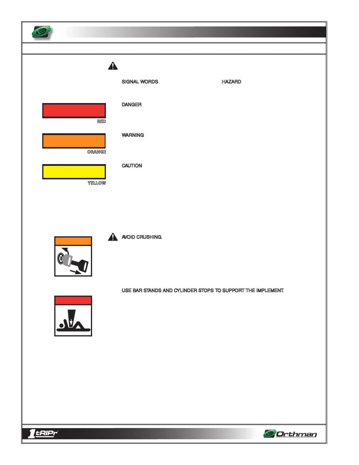 implement to shift or fall, resulting in injury or death, as well as implement damage.