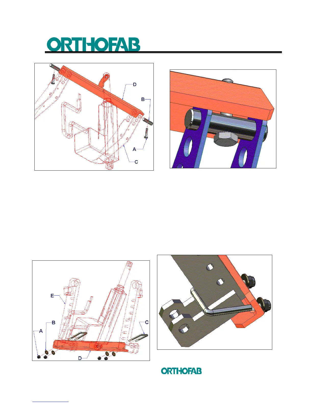 2. Insert the "U" shape bolt (C) over the height adjustment interfaces (E) and make