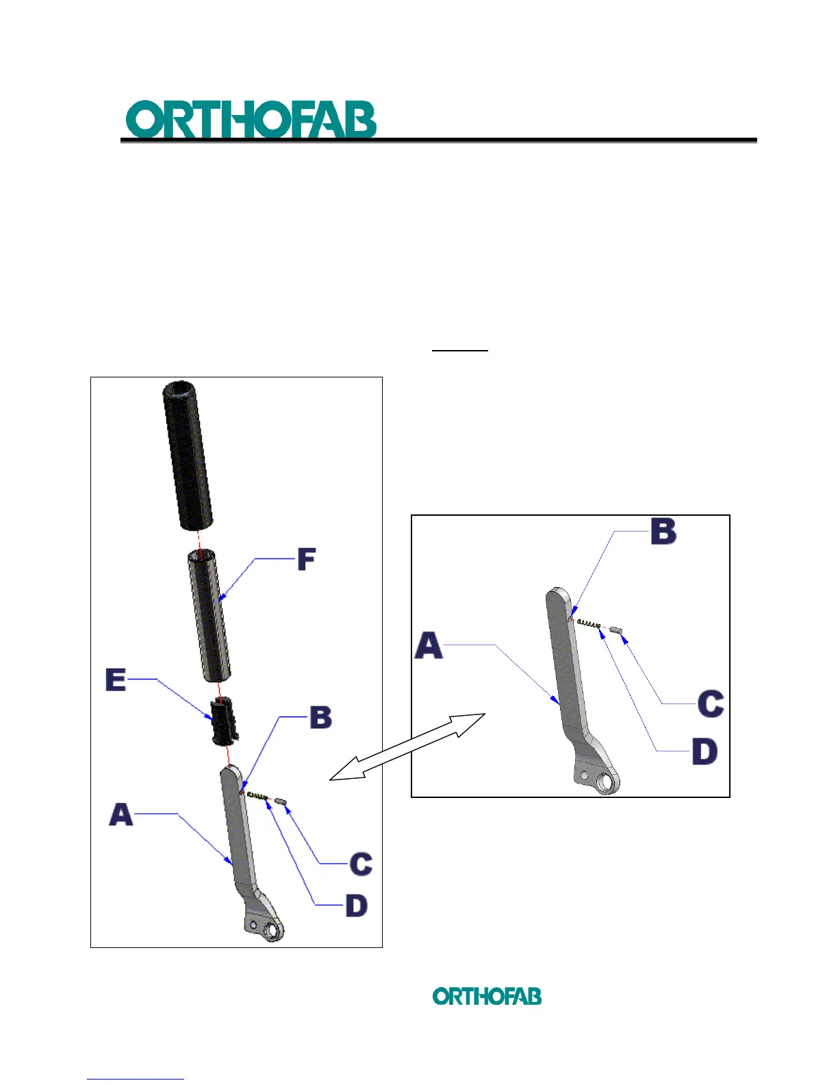 2. Place the (D) spring include with (F) extension, in the (B) hole ;