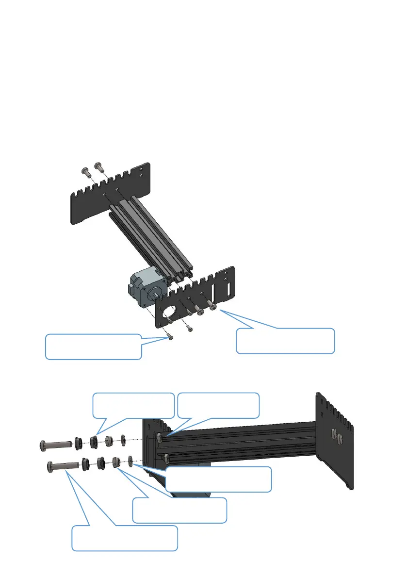 Ortur Y-axis - Assembly Procedure; Assemble Frame and Motor; Assemble Idle Pulley