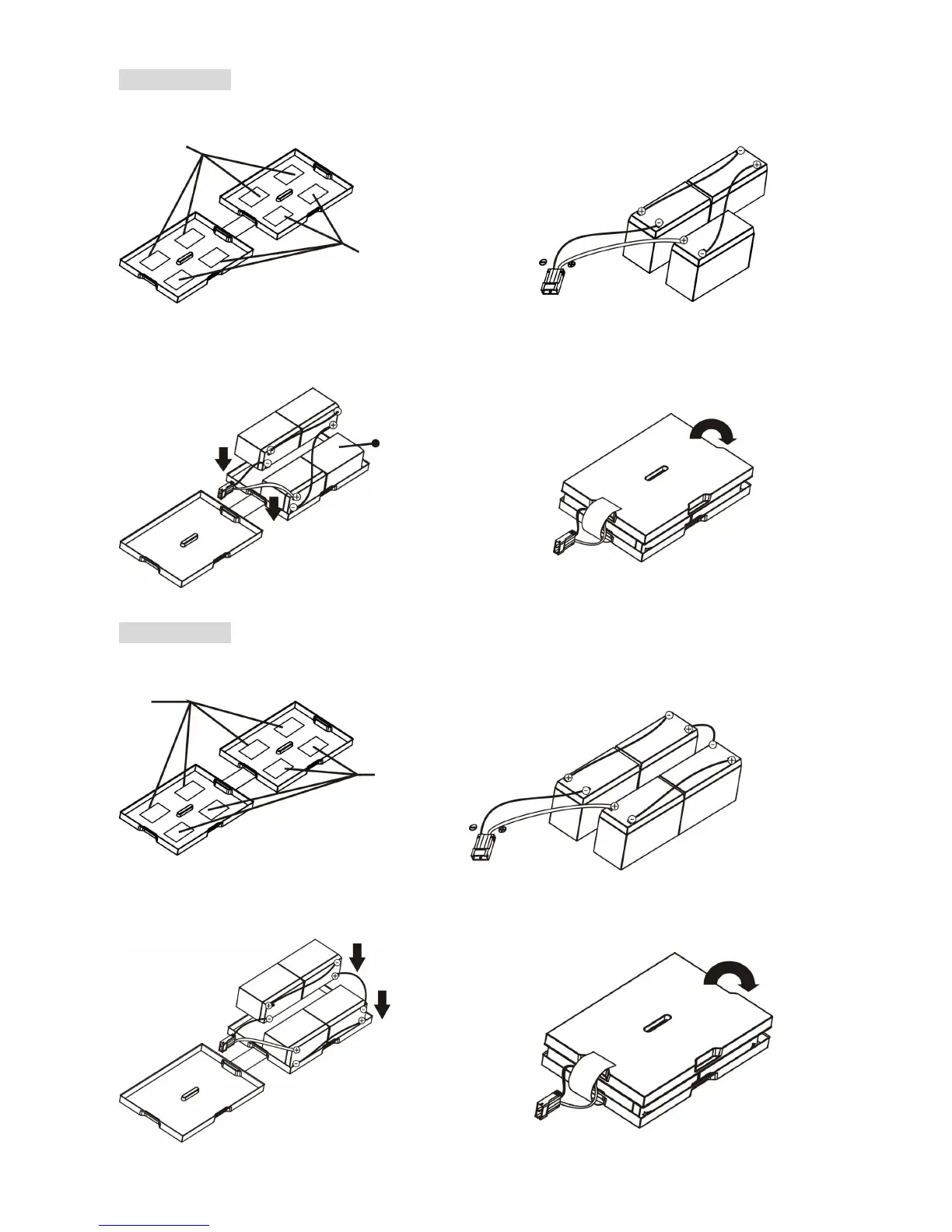 Step 1: Remove adhesive tapes. Step 2: Connect all battery terminals by