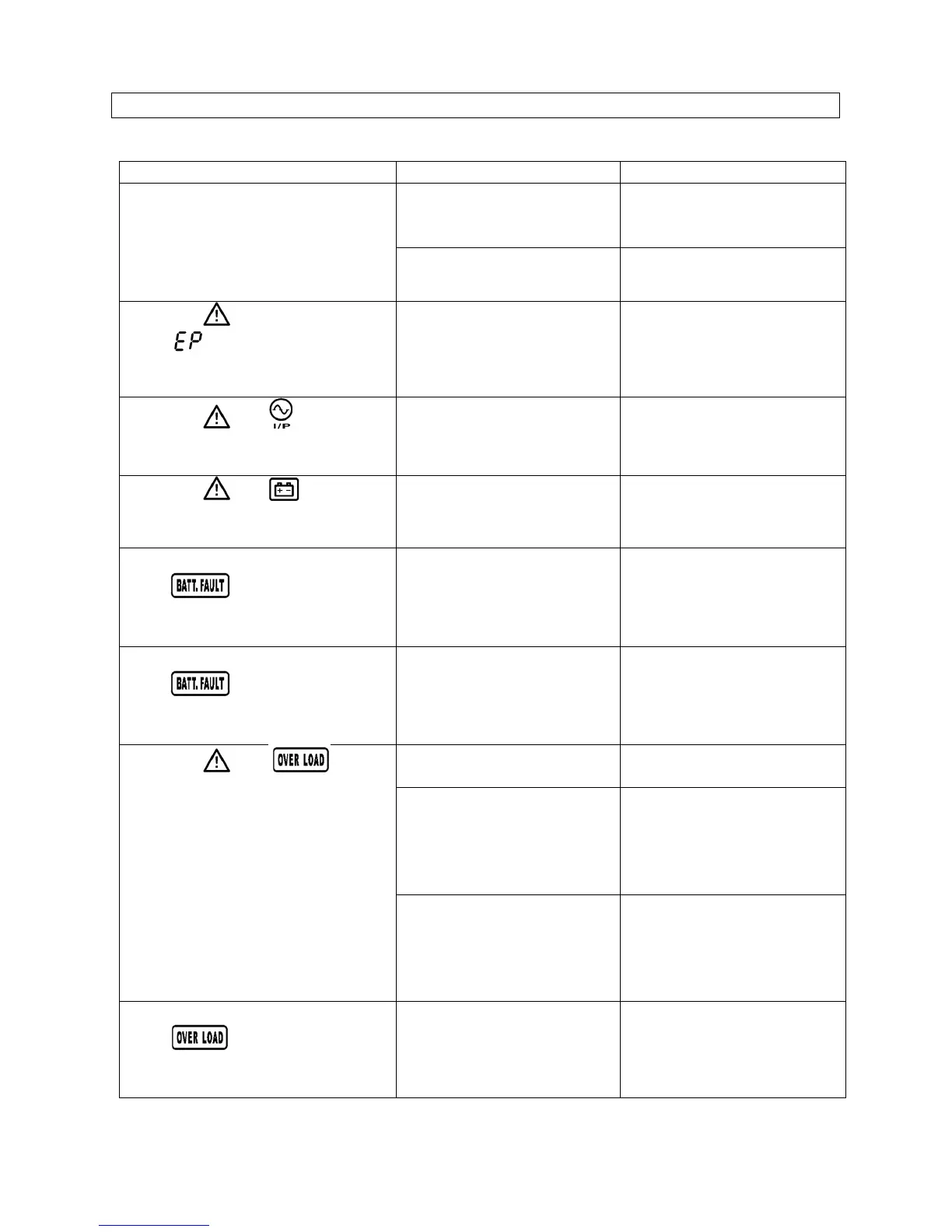 If the UPS system does not operate correctly, please solve the problem by using the table
