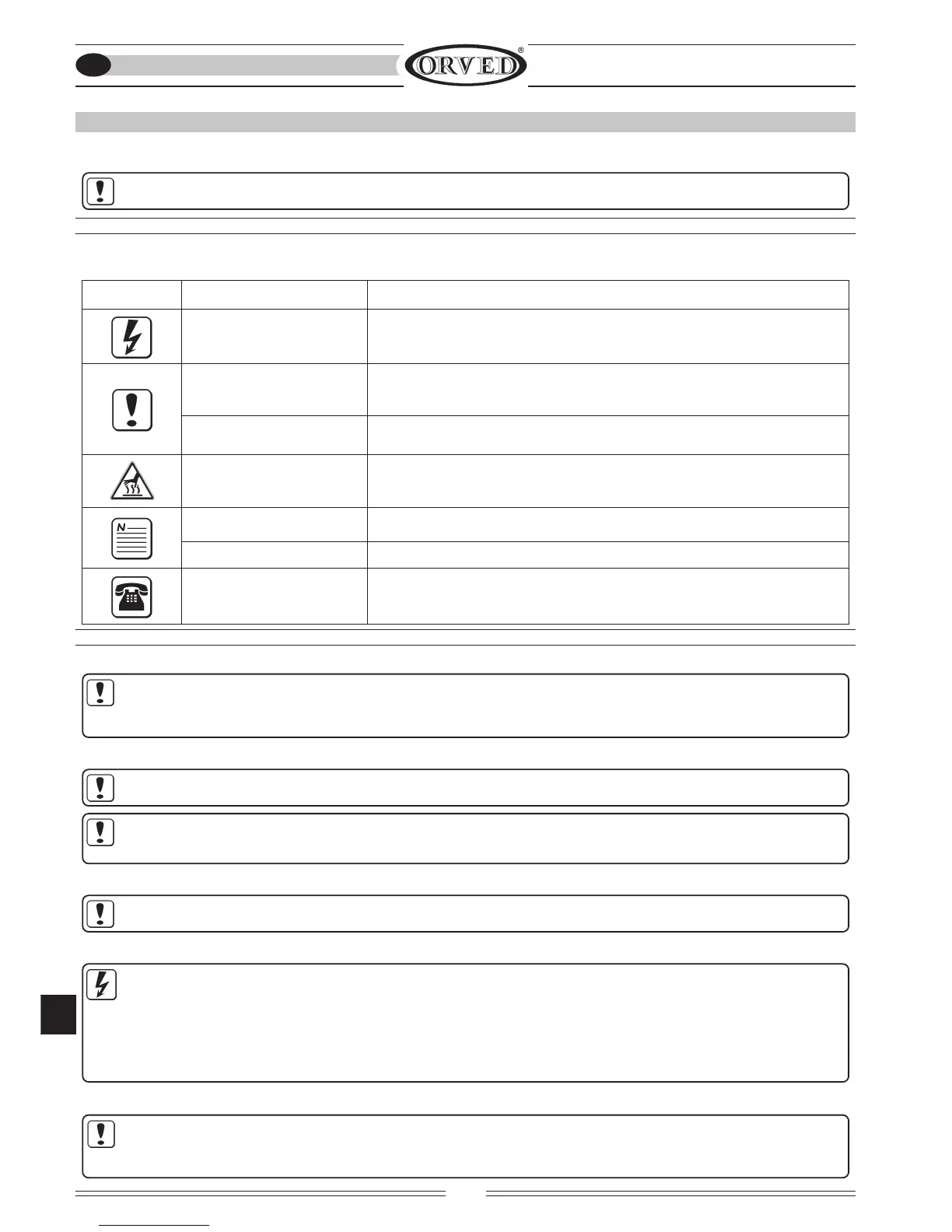 ORVED has analyzed the fundamental operations regarding use and maintenance for the design and construction of the appliance; the operating