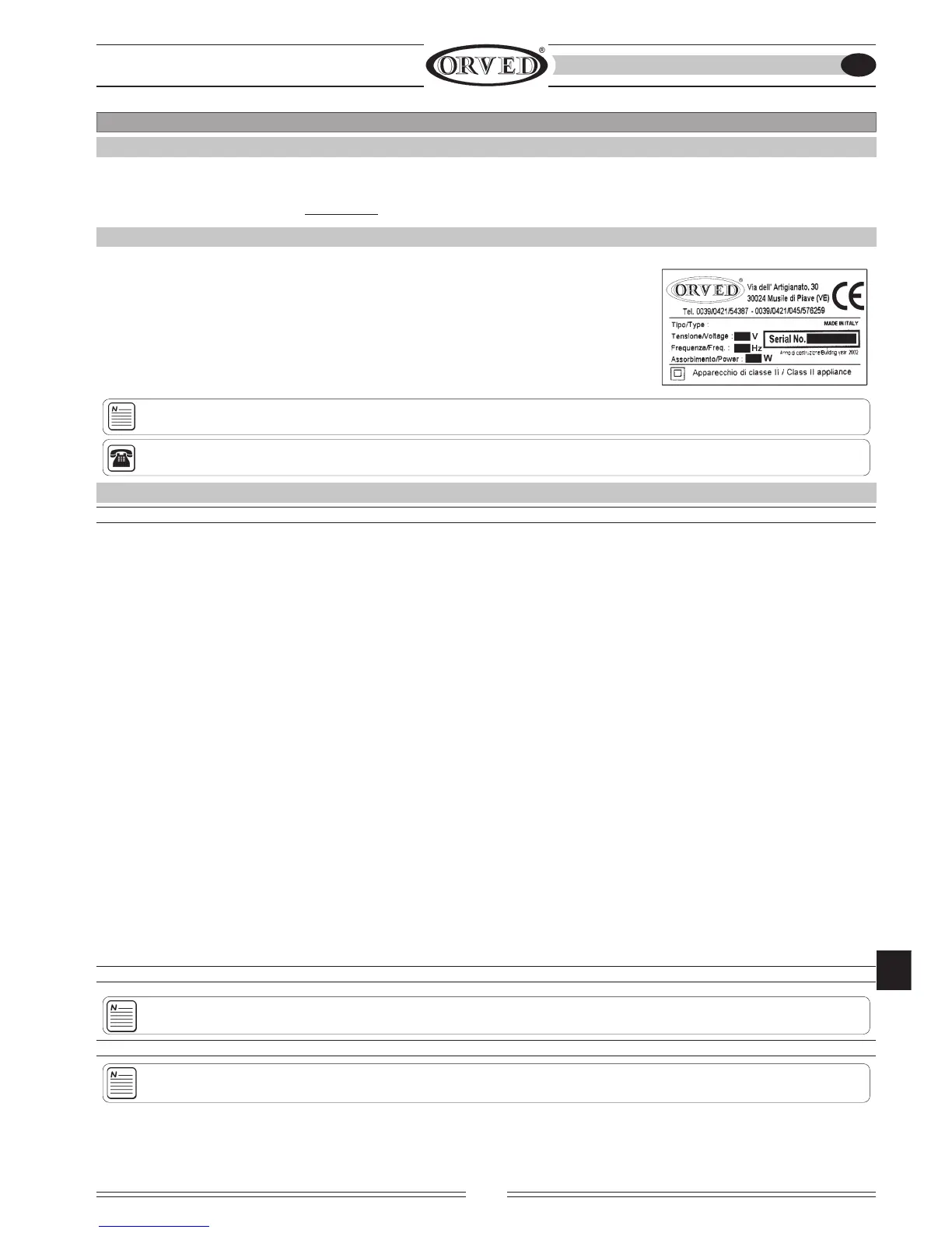 ORVED ïðåäîñòàâëÿåò íà ñâîþ ïðîäóêöèþ ãàðàíòèþ 12 ìåñÿöåâ ñî äíÿ ïðîäàæè ìàøèíû, îáîçíà÷åííóþ â äîêóìåíòàõ