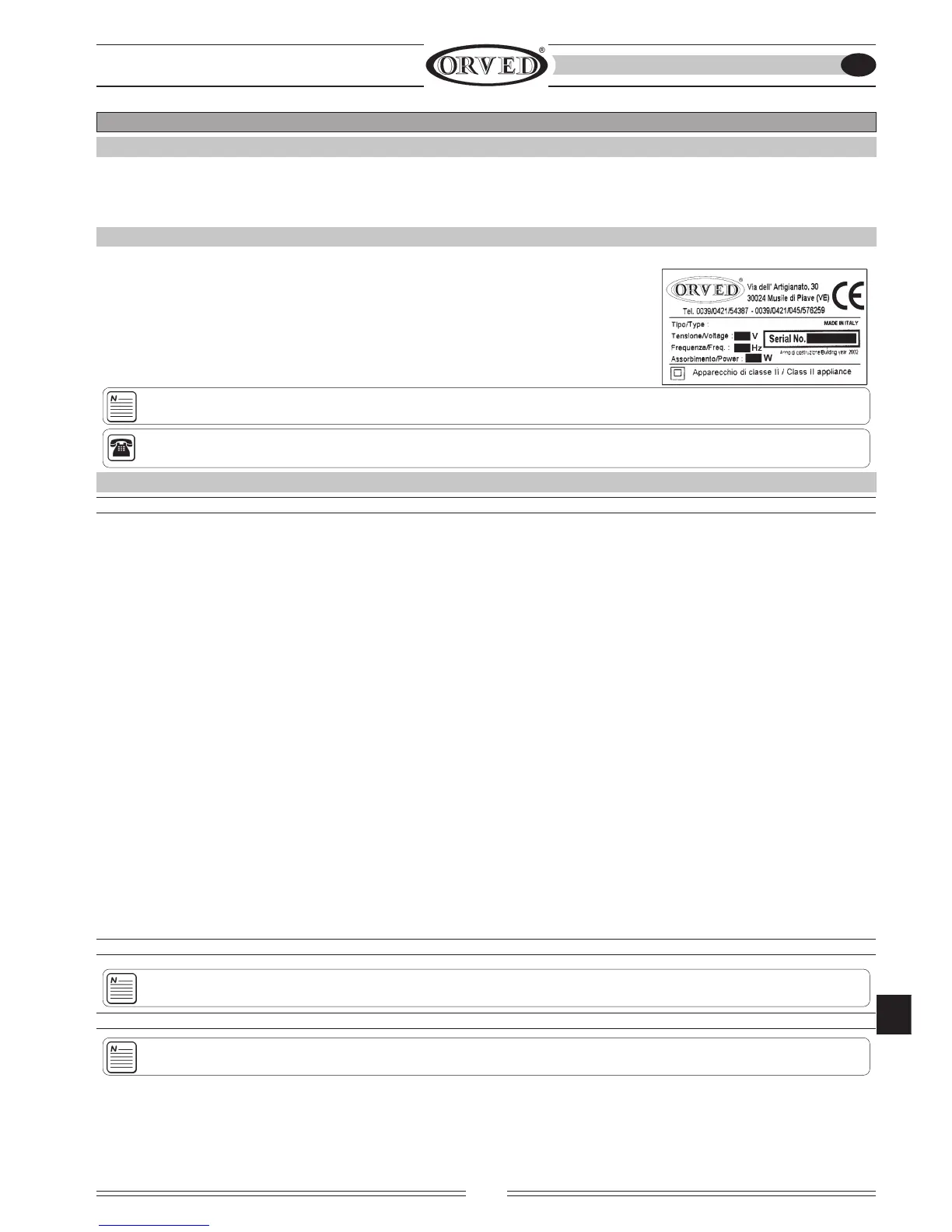 from invalidating the warranty, will free ORVED of all liability for all damage to persons, animals or objects.