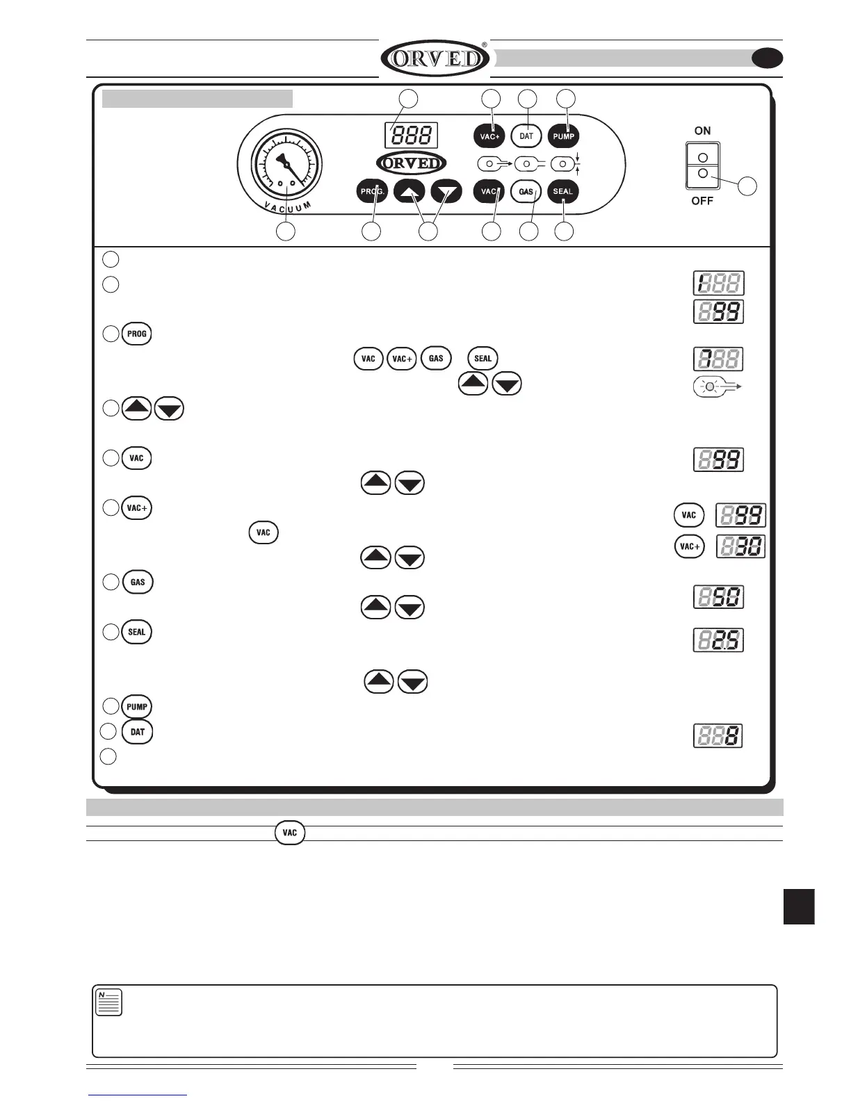 5 VACUUM FUNCTION KEY: • Displays percentage vacuum value set (0 to 99%).