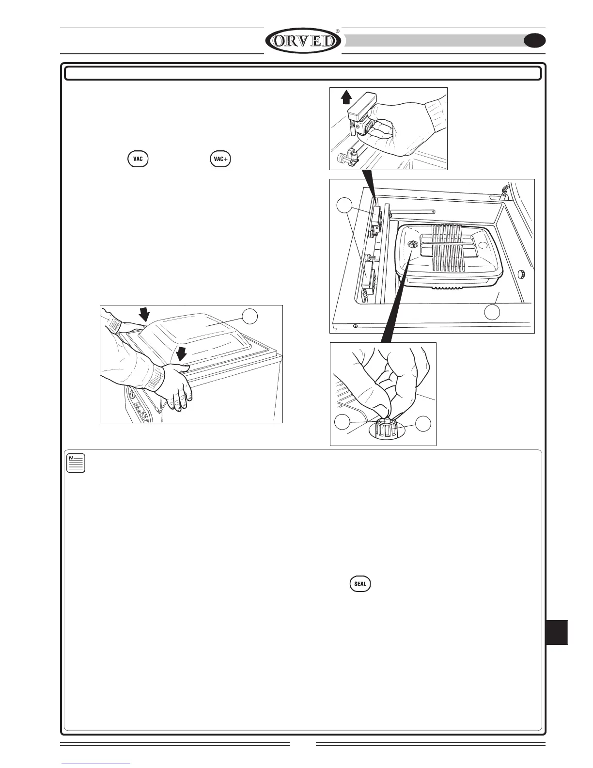 • WHEN THE GAS FUNCTION IS ACTIVATED, THE LENGTH OF THE BAG MUST BE SUFFICIENT TO ENSURE THAT THE OPENING