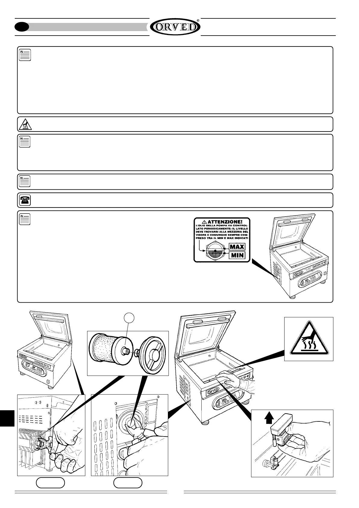 WARNING! THE PUMP OIL MUST BE CHANGED PERIODICALLY; THE FREQUENCY OF OIL CHANGES INCREASES