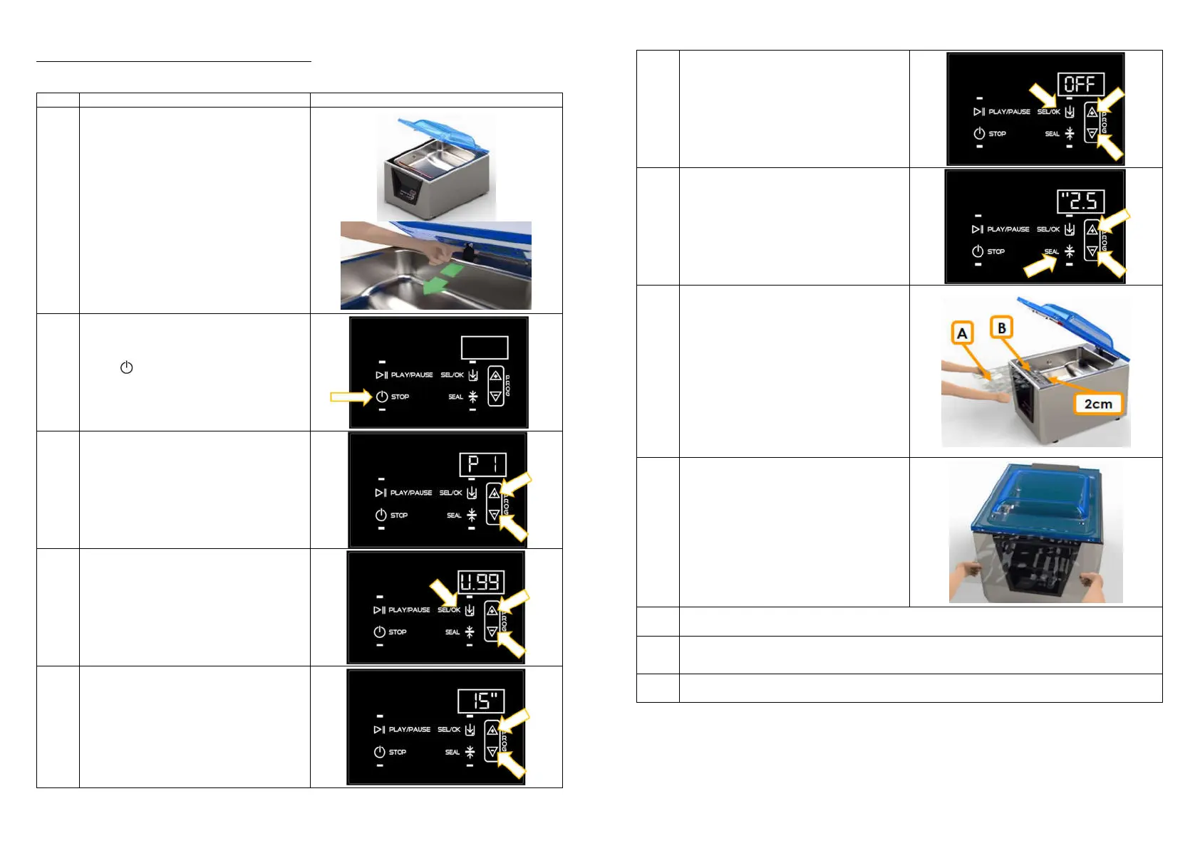 Press SEAL button to set the sealing time