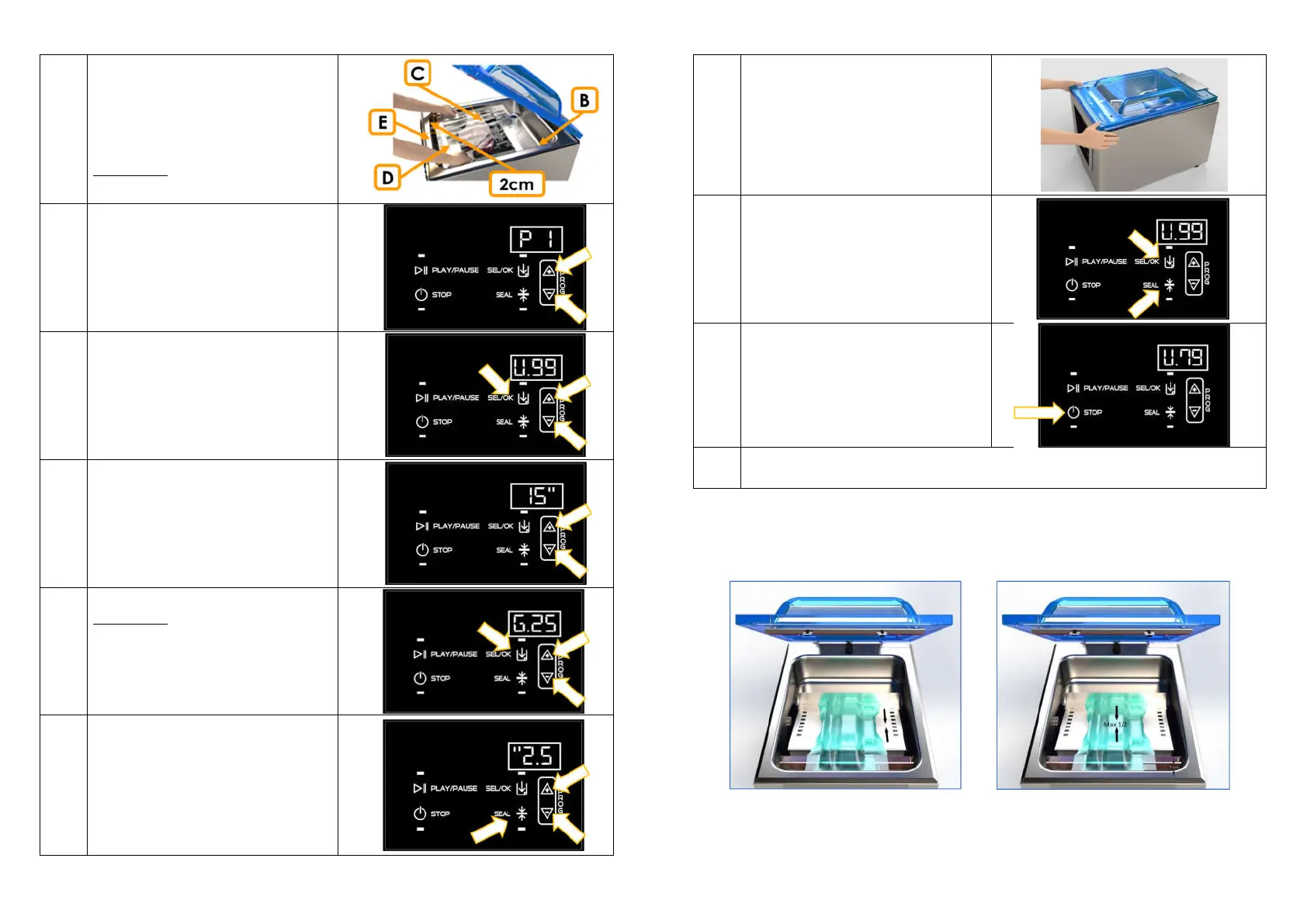 Press SEAL button to set the sealing time