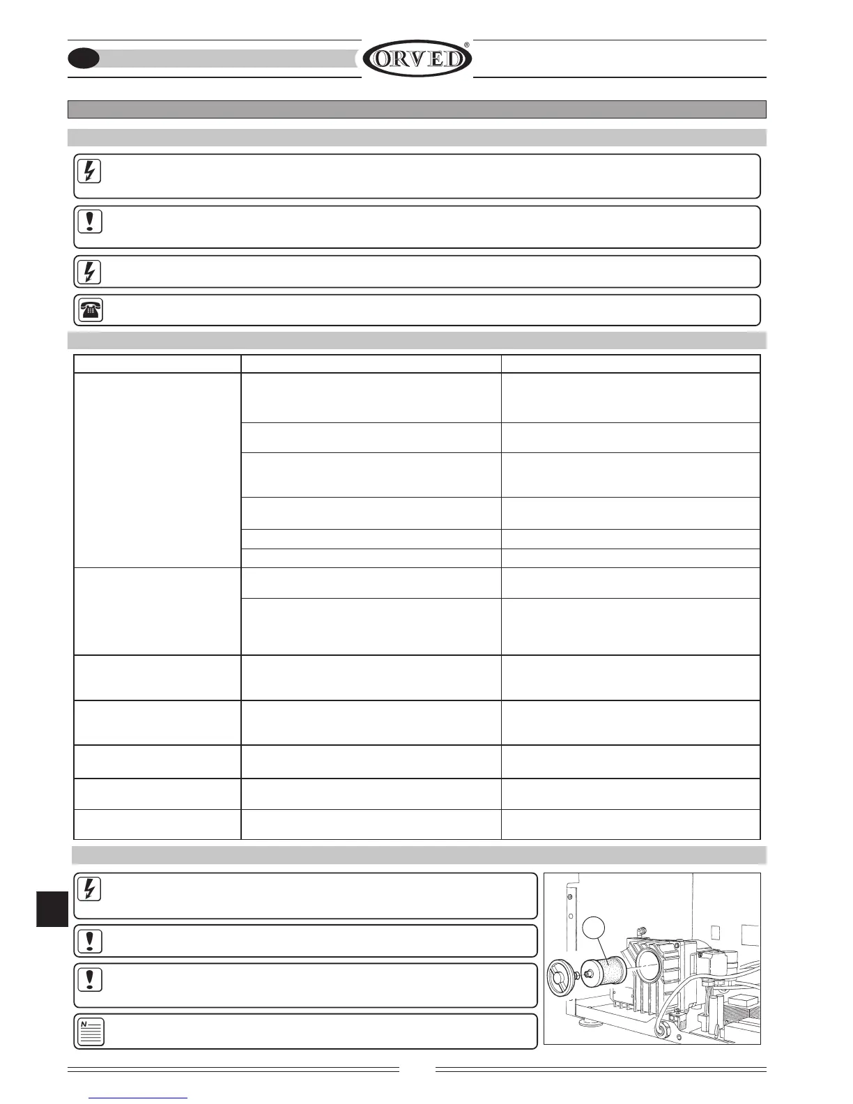 Maintenance and/or repair operations on any of the appliance components must be done only after disconnecting the power