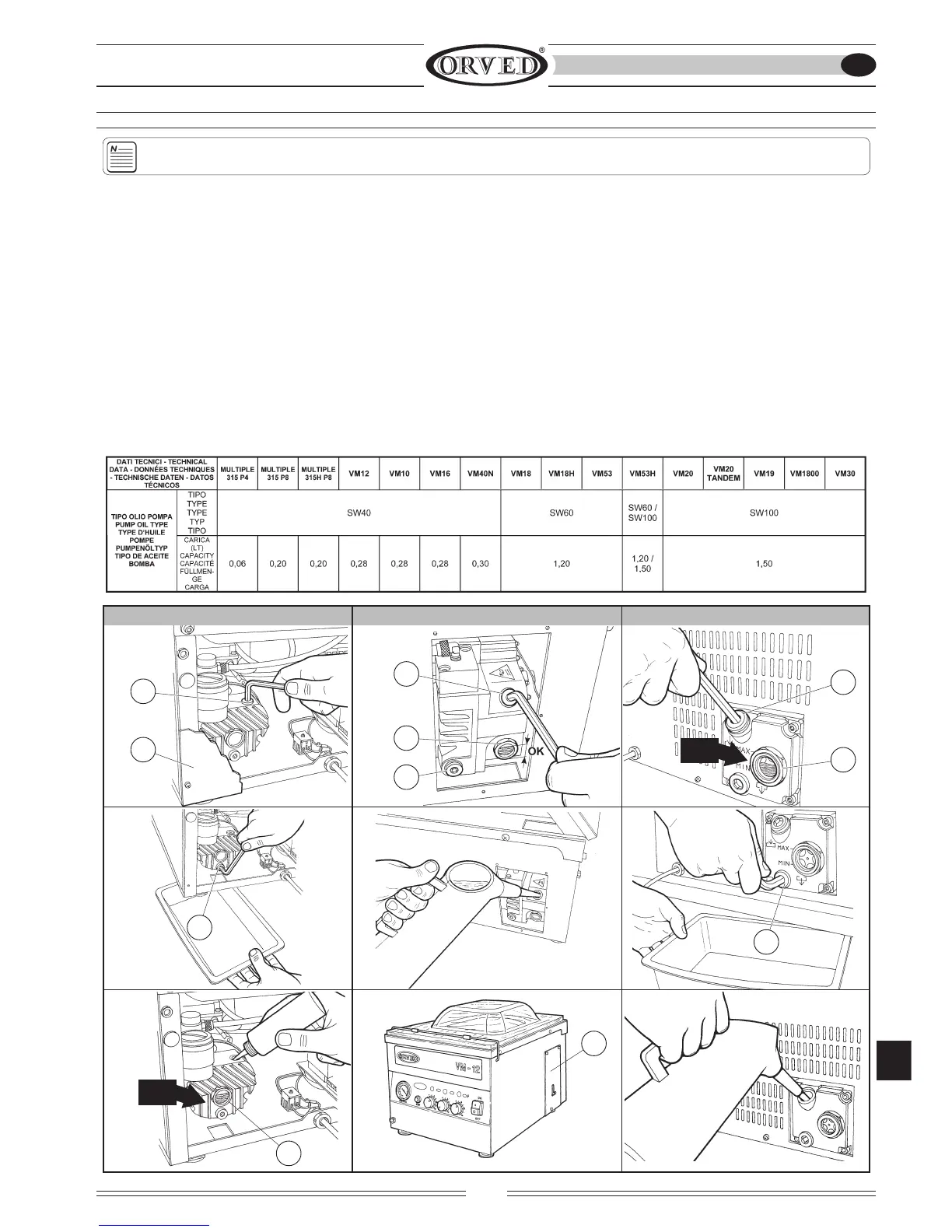 Pour l’opération de remplacement, utiliser exclusivement de l’huile originale type Orved40/60/100 dans les quantités indiquées dans le tableau ci-