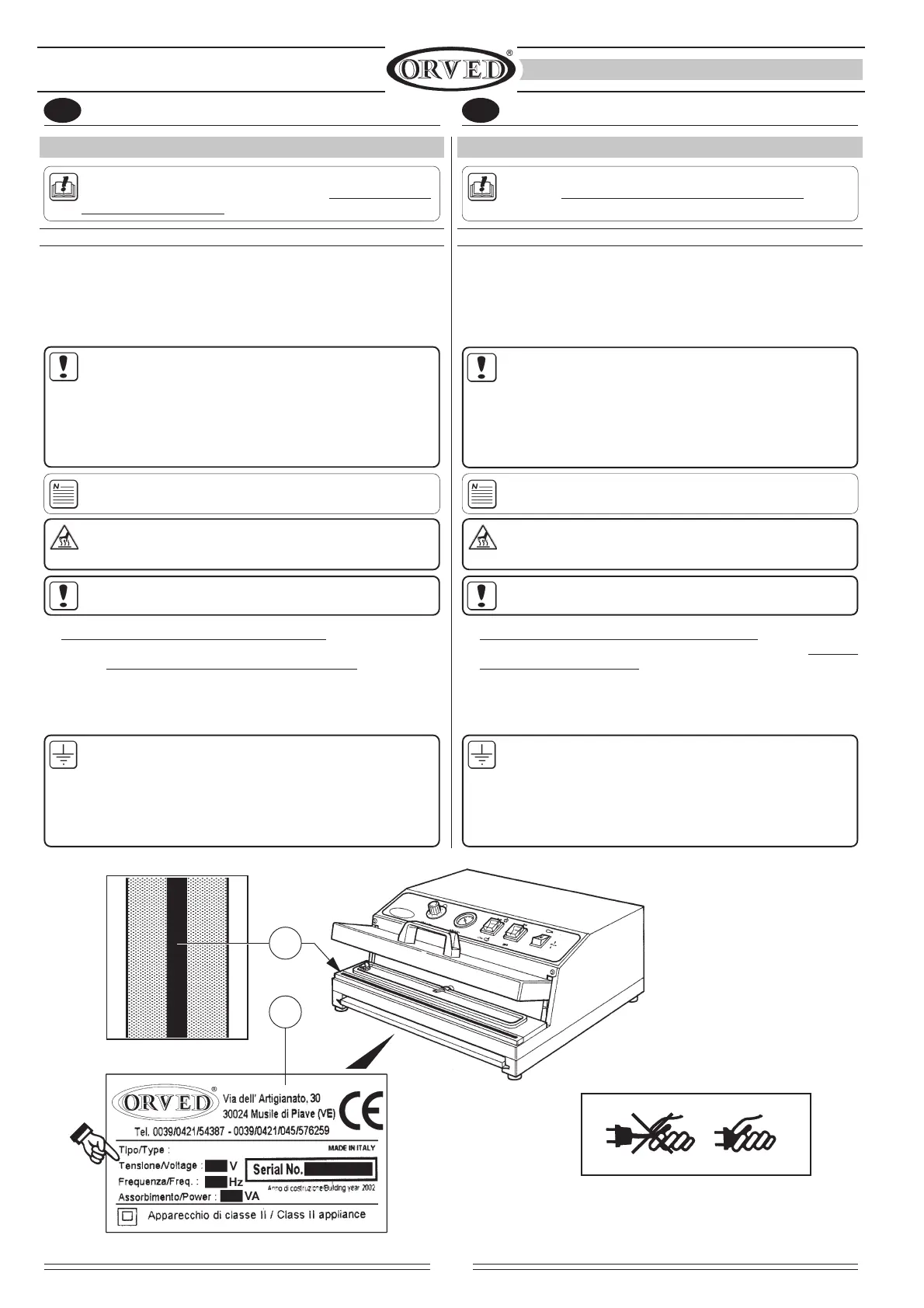 SOTTOVUOTO alla presa di corrente, leggere attenta-