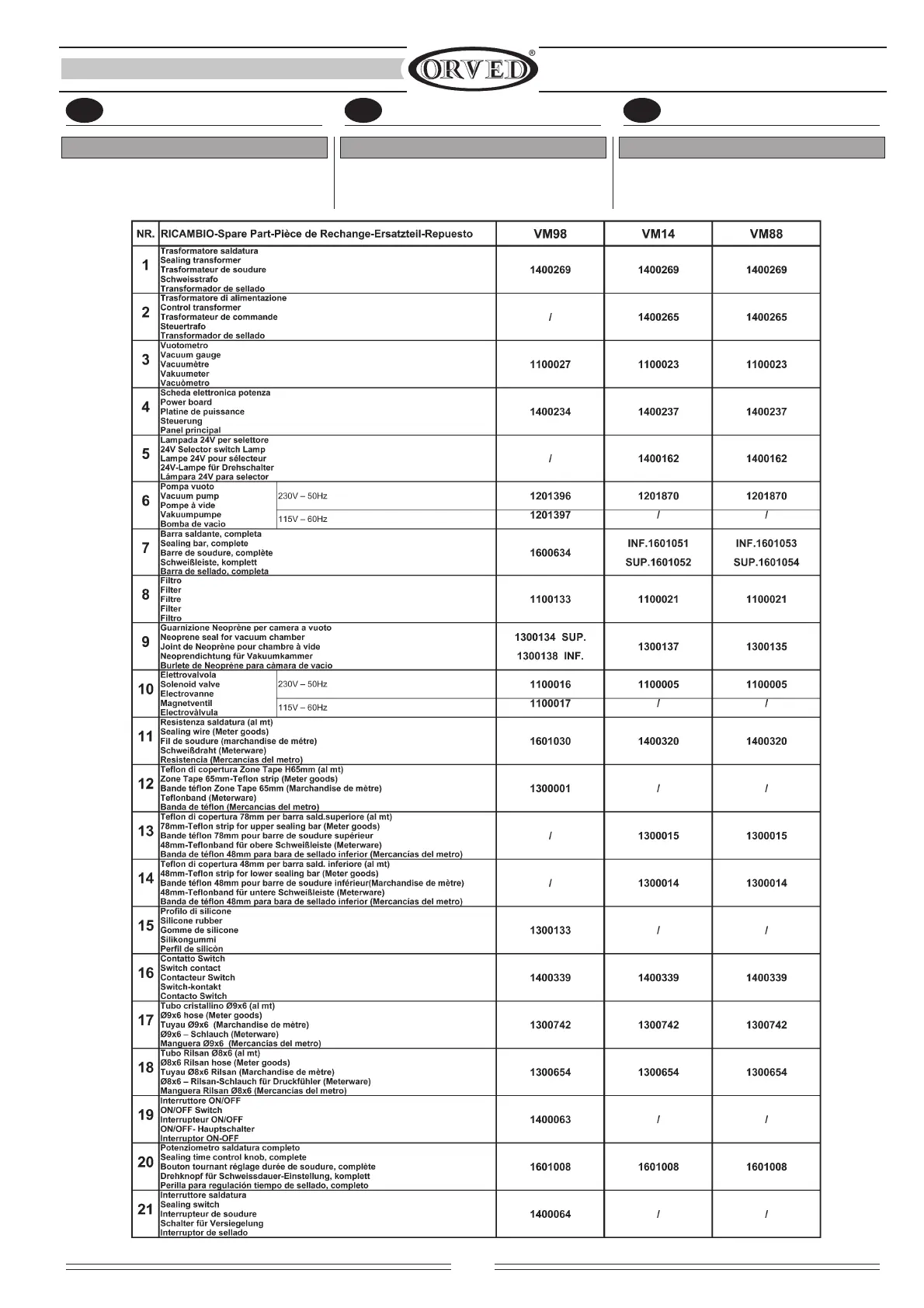 PIÈCES DE RECHANGE ERSETZTEILE PIEZAS DE REPUESTO