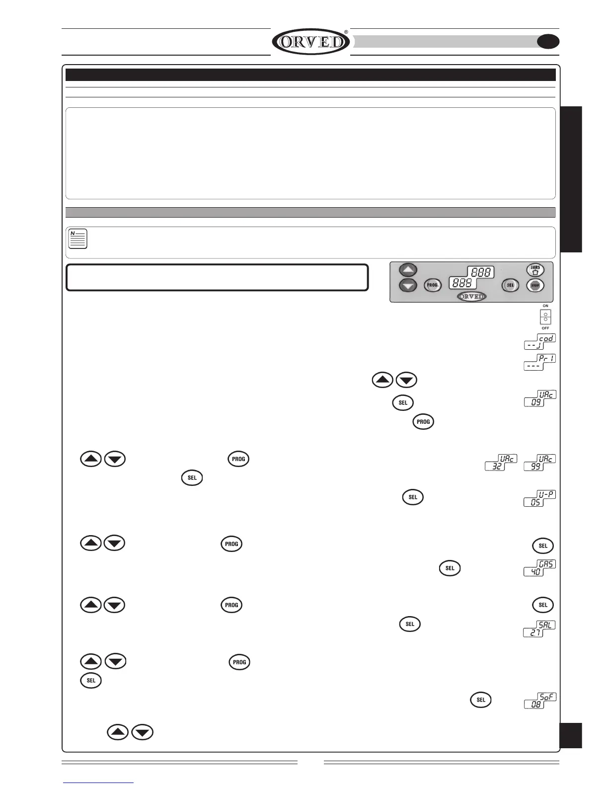 4) PROGRAMACIÓN FUNCIÓN VAC (véase pág. 151): entrar en programación presionando la tecla : las cifras del display parpadean.