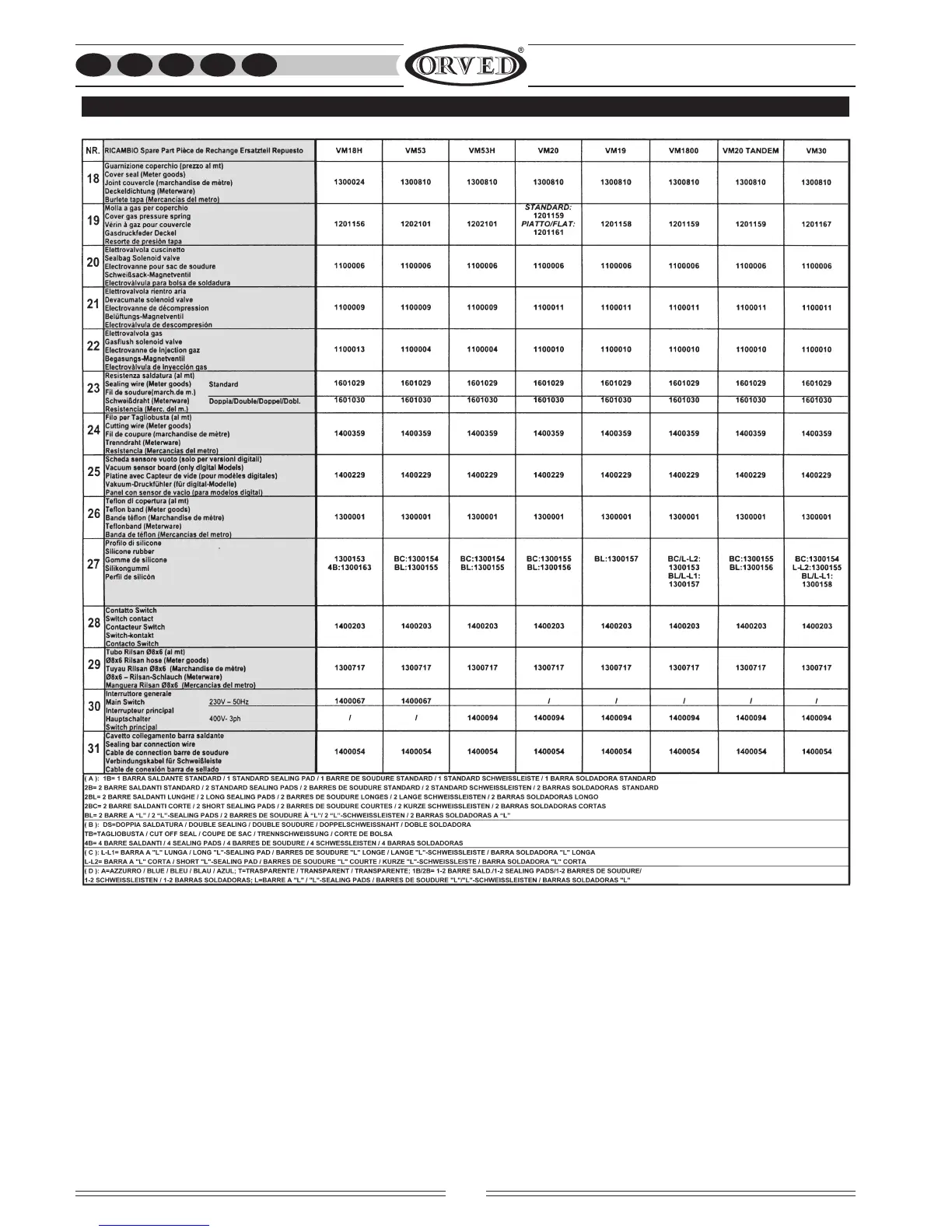Orved VM12 - Spare Parts List (Part 7); Spare Parts List (Part 8)