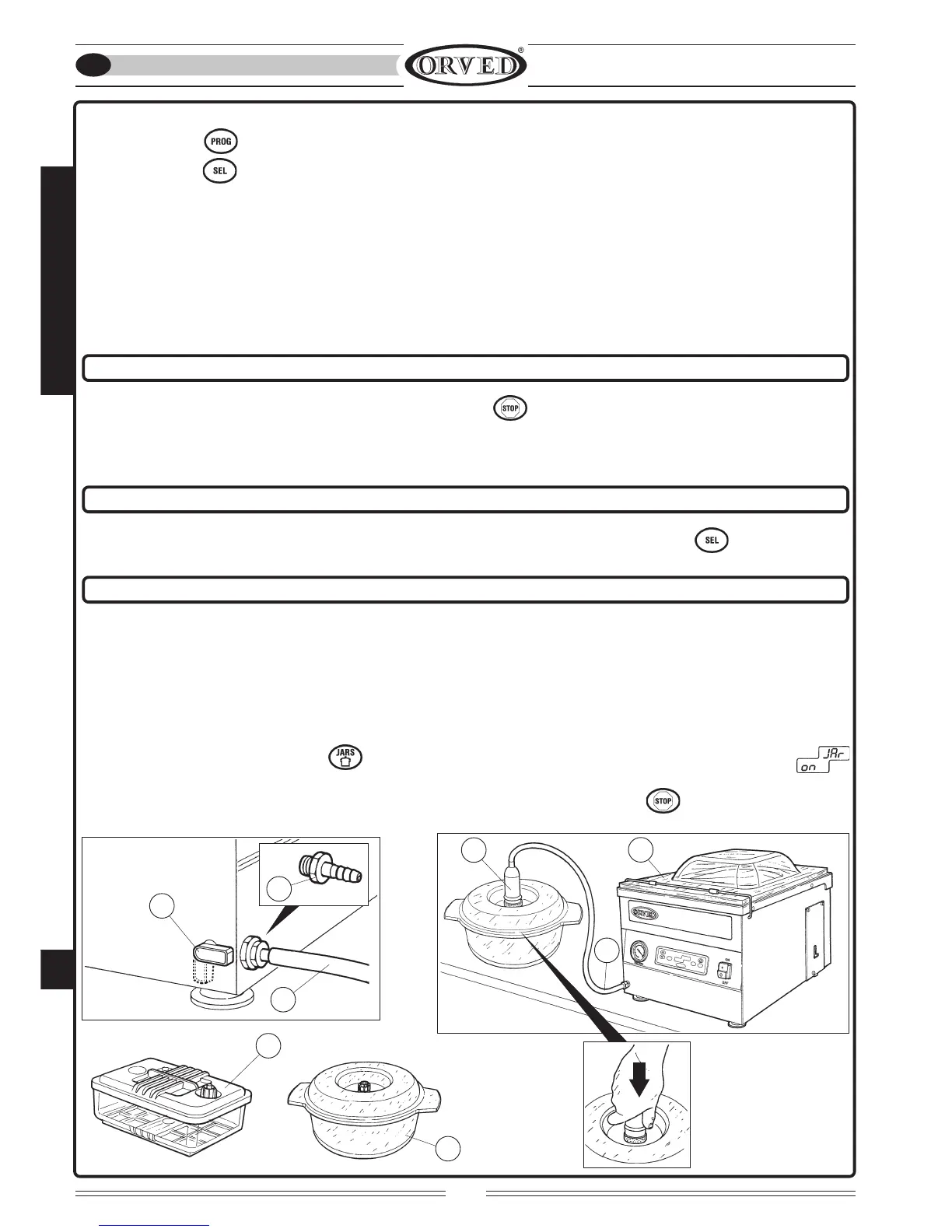 5) Attivare la funzione premendo il tasto giallo ed abbassare il coperchio della macchina (F). Attendere che il vuotometro indichi