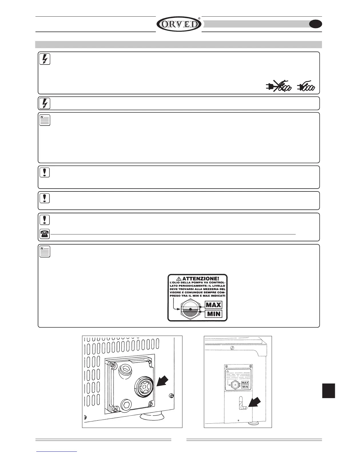 AVERTISSEMENT ! L’huile de la pompe doit être contrôlée à chaque utilisation de la machine à travers le voyant situé sur le flanc