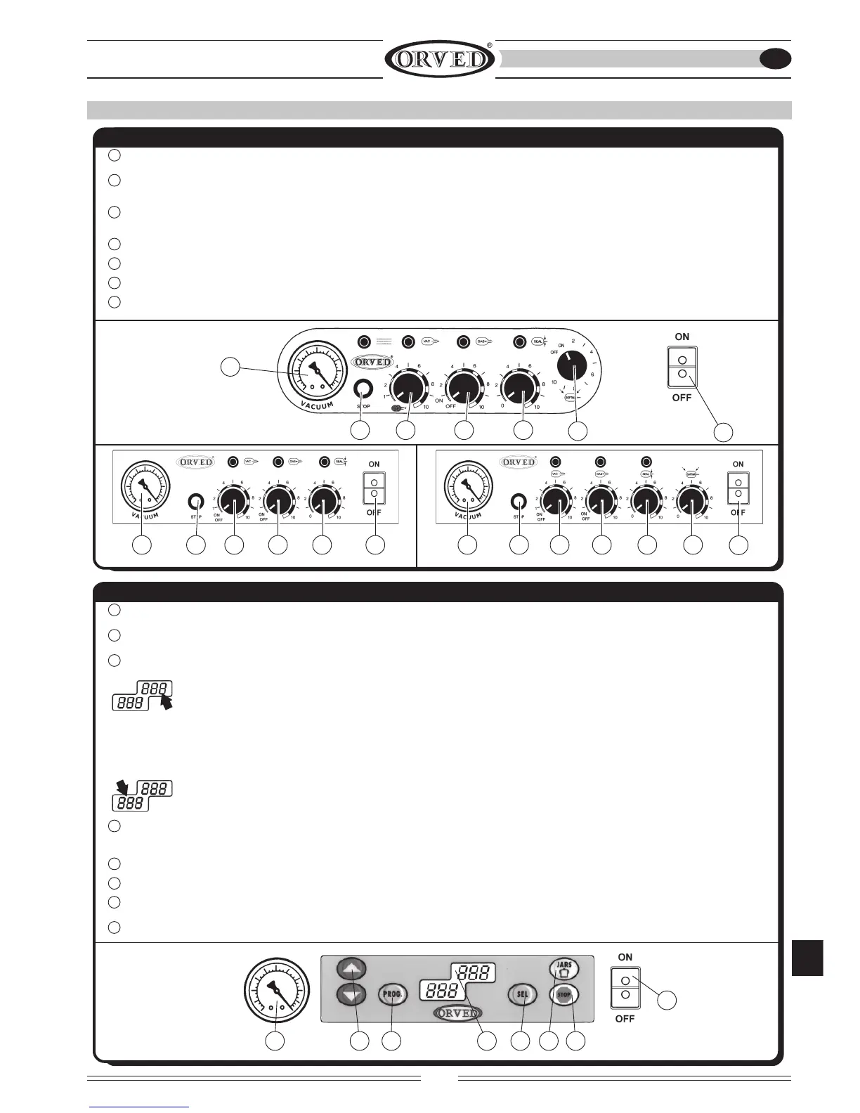 1 VACUOMÈTRE (0÷1 bar) : MESURE LA DÉPRESSION ATMOSPHÉRIQUE DANS LA CHAMBRE À VIDE.